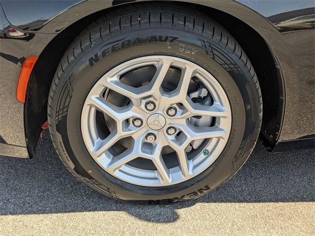 Diamond Black Crystal Pearlcoat 2025 Dodge Charger R/T AWD 1-Speed Automatic Electric Motor AWD, Black Artificial Leather, 10 Speakers, 18 x 8.5 Aluminum Wheels, 2-Way Manual Adjust Head Restraints, 2-Way Power Driver Lumbar Adjust, 4-Wheel Disc Brakes, 8-Way Power Driver Seat Adjust, ABS brakes, Air Conditioning, Alloy wheels, AM/FM radio: SiriusXM w/360L, Apple CarPlay/Android Auto, Auto-dimming Rear-View mirror, Automatic temperature control, Black Seats, Brake assist, Bumpers: body-color, Compass, Delay-off headlights, Driver door bin, Driver vanity mirror, Dual front impact airbags, Dual front side impact airbags, Electronic Stability Control, Emergency communication system: Dodge Connect, Four wheel independent suspension, Front anti-roll bar, Front Bucket Seats, Front Center Armrest, Front dual zone A/C, Front reading lights, Fully automatic headlights, Garage door transmitter, Heated door mirrors, Heated Exterior Mirrors, Heated Front Seats, Heated front seats, Heated steering wheel, Illuminated entry, Knee airbag, Leather Shift Knob, Leatherette/Cloth Performance Seats, Low Back Bucket Seats, Low tire pressure warning, Navigation System, Nexen Brand Tires, Occupant sensing airbag, Outside temperature display, Overhead airbag, Overhead console, Panic alarm, ParkView Rear Back-Up Camera, Passenger door bin, Passenger vanity mirror, Power Adjust Mirrors, Power door mirrors, Power driver seat, Power steering, Power windows, Quick Order Package 25M R/T, Radio data system, Radio: Uconnect 5 Nav w/12.3 Display, Rear anti-roll bar, Rear reading lights, Rear seat center armrest, Rear window defroster, Remote keyless entry, Security system, Speed control, Split folding rear seat, Sport steering wheel, Steering wheel mounted audio controls, Telescoping steering wheel, Tilt steering wheel, Traction control, Trip computer, Two Tone Paint Group, Variably intermittent wipers, AWD, Black Artificial Leather.