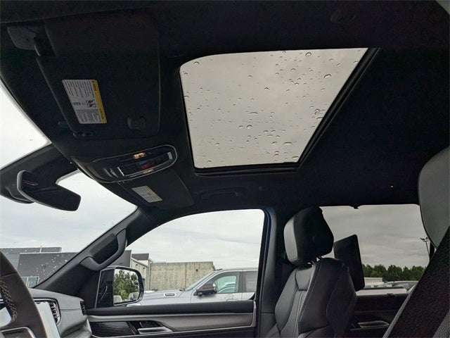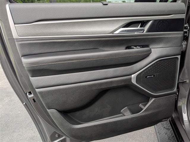 Well equipped with: Carbide Appearance Package, Convenience Group I (2nd Row Manual Window Shades, Auto Adjust In Reverse Exterior Mirrors, Auto High Beam Headlamp Control, Auto Power Folding Exterior Mirrors, Auto Power-Folding Mirrors, Auto-Dimming Exterior Driver Mirror, Drowsy Driver Detection, Exterior Mirrors Approach Lamps, Exterior Mirrors w/Memory, Exterior Mirrors w/Supplemental Signals, Heads-Up Display, Heated Exterior Mirrors, Intersection Collision Assist System, P&P Park & Unpark Assist w/Stop System, Quadra-Lift Air Suspension, Rack Cargo Management System, Semi Active Damping, Side Distance Warning, Surround View Camera System, and Traffic Sign Recognition), HD Trailer Tow Package (118 MPH Maximum Speed Calibration, 2 Speed On Demand Transfer Case, 3.92 Rear Axle Ratio, Electronic Rear Limited Slip Differential, Heavy-Duty Engine Cooling, Removable Rear Tow Hook, Selec-Speed Control, Trailer Brake Control, and Trailer Hitch Zoom), Premium Group I (3 Panel Sunroof, Adjustable Roof Rail Crossbars, and Reversible Carpet/Vinyl Cargo Mat), Quick Order Package 25F Carbide (Piano Black Exterior Accents and Wheels: 20 x 9.0 Aluminum Painted Gloss Black), Rear Seat Video Group 1 (Amazon Fire TV Built-In, Seatback Video Screens, and Video USB Port), 10 Speakers, 3.55 Rear Axle Ratio, 3rd row seats: bench, 4-Wheel Disc Brakes, ABS brakes, Air Conditioning, Alloy wheels, AM/FM radio: SiriusXM with 360L, Anti-whiplash front head restraints, Apple CarPlay/Android Auto, Audio memory, Auto-dimming door mirrors, Auto-dimming Rear-View mirror, Auto-leveling suspension, Automatic temperature control, Brake assist, Bumpers: body-color, Compass, Delay-off headlights, Driver door bin, Driver vanity mirror, Driver's Seat Mounted Armrest, Dual front impact airbags, Dual front side impact airbags, Electronic Stability Control, Emergency communication system: Jeep Connect, Four wheel independent suspension, Front anti-roll bar, Front Bucket Seats, Front Center Armrest w/Storage, Front dual zone A/C, Front fog lights, Front License Plate Bracket, Front reading lights, Fully automatic headlights, Garage door transmitter, Genuine wood console insert, Genuine wood dashboard insert, Genuine wood door panel insert, Heated door mirrors, Heated front seats, Heated rear seats, Heated steering wheel, Illuminated entry, Knee airbag, Leather Trimmed Bucket Seats, Low tire pressure warning, Memory seat, Navigation System, Normal Duty Suspension, Occupant sensing airbag, Outside temperature display, Overhead airbag, Overhead console, Panic alarm, ParkView Rear Back-Up Camera, Passenger door bin, Passenger seat mounted armrest, Passenger vanity mirror, Power adjustable front head restraints, Power door mirrors, Power driver seat, Power Liftgate, Power passenger seat, Power steering, Power windows, Radio data system, Radio: Uconnect 5 Nav w/10.1 Display, Rain sensing wipers, Rear air conditioning, Rear anti-roll bar, Rear reading lights, Rear seat center armrest, Rear window defroster, Rear window wiper, Reclining 3rd row seat, Remote keyless entry, Security system, Speed control, Speed-sensing steering, Speed-Sensitive Wipers, Split folding rear seat, Steering wheel memory, Steering wheel mounted audio controls, Tachometer, Telescoping steering wheel, Tilt steering wheel, Traction control, Trip computer, Turn signal indicator mirrors, Variably intermittent wipers, Ventilated front seats, Voltmeter, Wheels: 20 x 9.0 Premium 2 Aluminum, and Wheels: 22 x 9.0 Painted Gloss Black.