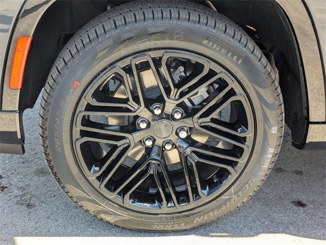 Well equipped with: Carbide Appearance Package, Premium Group I (118 MPH Maximum Speed Calibration, 3 Panel Sunroof, Adjustable Roof Rail Crossbars, and Reversible Carpet/Vinyl Cargo Mat), Quick Order Package 25F Carbide (Piano Black Exterior Accents and Wheels: 20 x 9.0 Aluminum Painted Gloss Black), 10 Speakers, 3.55 Rear Axle Ratio, 3rd row seats: bench, 4-Wheel Disc Brakes, ABS brakes, Air Conditioning, Alloy wheels, AM/FM radio: SiriusXM with 360L, Anti-whiplash front head restraints, Apple CarPlay/Android Auto, Audio memory, Auto Adjust In Reverse Exterior Mirrors, Auto-dimming door mirrors, Auto-Dimming Exterior Driver Mirror, Auto-dimming Rear-View mirror, Auto-leveling suspension, Automatic temperature control, Brake assist, Bumpers: body-color, Compass, Delay-off headlights, Driver door bin, Driver vanity mirror, Driver's Seat Mounted Armrest, Dual front impact airbags, Dual front side impact airbags, Electronic Stability Control, Emergency communication system: Jeep Connect, Exterior Mirrors Approach Lamps, Exterior Mirrors w/Memory, Exterior Mirrors w/Supplemental Signals, Four wheel independent suspension, Front anti-roll bar, Front Bucket Seats, Front Center Armrest w/Storage, Front dual zone A/C, Front fog lights, Front License Plate Bracket, Front reading lights, Fully automatic headlights, Garage door transmitter, Genuine wood console insert, Genuine wood dashboard insert, Genuine wood door panel insert, Heated door mirrors, Heated Exterior Mirrors, Heated front seats, Heated rear seats, Heated steering wheel, Illuminated entry, Knee airbag, Leather Trimmed Bucket Seats, Low tire pressure warning, Memory seat, Navigation System, Normal Duty Suspension, Occupant sensing airbag, Outside temperature display, Overhead airbag, Overhead console, Panic alarm, ParkView Rear Back-Up Camera, Passenger door bin, Passenger seat mounted armrest, Passenger vanity mirror, Power adjustable front head restraints, Power door mirrors, Power driver seat, Power Liftgate, Power passenger seat, Power steering, Power windows, Radio data system, Radio: Uconnect 5 Nav w/10.1 Display, Rain sensing wipers, Rear air conditioning, Rear anti-roll bar, Rear reading lights, Rear seat center armrest, Rear window defroster, Rear window wiper, Reclining 3rd row seat, Remote keyless entry, Security system, Speed control, Speed-sensing steering, Speed-Sensitive Wipers, Split folding rear seat, Steering wheel memory, Steering wheel mounted audio controls, Tachometer, Telescoping steering wheel, Tilt steering wheel, Traction control, Trip computer, Turn signal indicator mirrors, Variably intermittent wipers, Ventilated front seats, Voltmeter, Wheels: 20 x 9.0 Premium 2 Aluminum, and Wheels: 22 x 9.0 Painted Gloss Black.