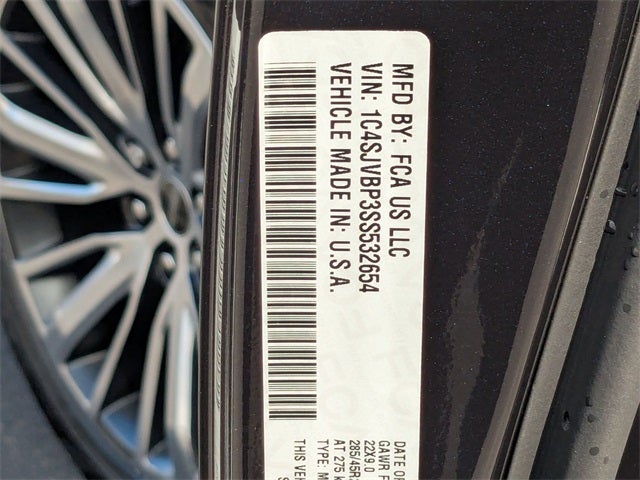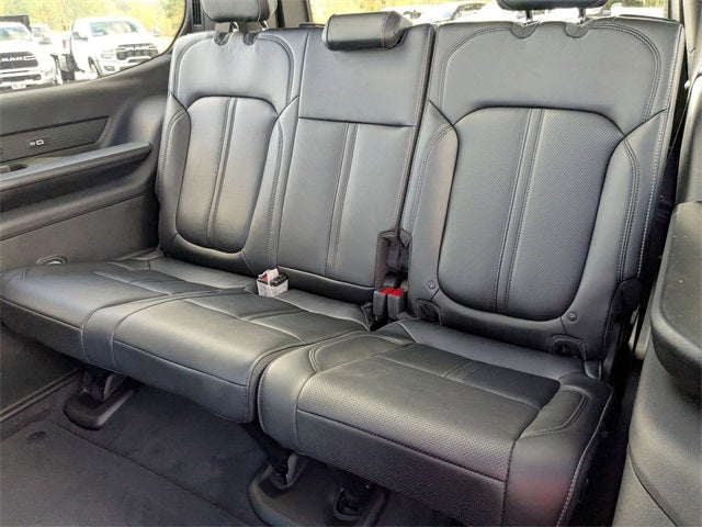 Well equipped with: Quick Order Package 25L Limited (3 Panel Sunroof, 60/40 Power Recline 3rd Row Seat, Auto Adjust In Reverse Exterior Mirrors, Auto High Beam Headlamp Control, Auto Power Folding Exterior Mirrors, Auto Power-Folding Mirrors, Auto-Dimming Exterior Driver Mirror, Drowsy Driver Detection, Exterior Accents Limited, Exterior Mirrors Approach Lamps, Exterior Mirrors w/Memory, Exterior Mirrors w/Supplemental Signals, Heated Exterior Mirrors, Intersection Collision Assist System, P&P Park & Unpark Assist w/Stop System, Power Deployable Running Boards, Quadra-Lift Air Suspension, Semi Active Damping, Side Distance Warning, Surround View Camera System, Traffic Sign Recognition, and Wheels: 22 x 9.0 Premium 4 Aluminum), 10 Speakers, 118 MPH Maximum Speed Calibration, 3.55 Rear Axle Ratio, 3rd row seats: bench, 4-Wheel Disc Brakes, ABS brakes, Air Conditioning, Alloy wheels, AM/FM radio: SiriusXM with 360L, Anti-whiplash front head restraints, Apple CarPlay/Android Auto, Audio memory, Auto-dimming door mirrors, Auto-dimming Rear-View mirror, Auto-leveling suspension, Automatic temperature control, Brake assist, Bumpers: body-color, Compass, Delay-off headlights, Driver door bin, Driver vanity mirror, Driver's Seat Mounted Armrest, Dual front impact airbags, Dual front side impact airbags, Electronic Stability Control, Emergency communication system: Jeep Connect, Four wheel independent suspension, Front anti-roll bar, Front Bucket Seats, Front Center Armrest w/Storage, Front dual zone A/C, Front fog lights, Front License Plate Bracket, Front reading lights, Fully automatic headlights, Garage door transmitter, Genuine wood console insert, Genuine wood dashboard insert, Genuine wood door panel insert, Heated door mirrors, Heated front seats, Heated rear seats, Heated steering wheel, Illuminated entry, Knee airbag, Leather Trimmed Bucket Seats, Low tire pressure warning, Memory seat, Navigation System, Normal Duty Suspension, Occupant sensing airbag, Outside temperature display, Overhead airbag, Overhead console, Panic alarm, ParkView Rear Back-Up Camera, Passenger door bin, Passenger seat mounted armrest, Passenger vanity mirror, Power adjustable front head restraints, Power door mirrors, Power driver seat, Power Liftgate, Power passenger seat, Power steering, Power windows, Radio data system, Radio: Uconnect 5 Nav w/10.1 Display, Rain sensing wipers, Rear air conditioning, Rear anti-roll bar, Rear dual zone A/C, Rear reading lights, Rear seat center armrest, Rear window defroster, Rear window wiper, Reclining 3rd row seat, Remote keyless entry, Security system, Speed control, Speed-sensing steering, Speed-Sensitive Wipers, Split folding rear seat, Steering wheel memory, Steering wheel mounted audio controls, Tachometer, Telescoping steering wheel, Tilt steering wheel, Traction control, Trip computer, Turn signal indicator mirrors, Variably intermittent wipers, Ventilated front seats, Voltmeter, and Wheels: 20 x 9.0 Premium 2 Aluminum.