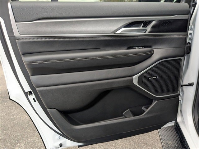 Well equipped with: Carbide Appearance Package, Premium Group I (3 Panel Sunroof, Adjustable Roof Rail Crossbars, Cargo Cover, and Reversible Carpet/Vinyl Cargo Mat), Quick Order Package 25F Carbide (Black Exterior Accents and Wheels: 20 x 9 Gloss Black Painted Aluminum), 10 Speakers, 118 MPH Maximum Speed Calibration, 3.55 Rear Axle Ratio, 3rd row seats: bench, 4-Wheel Disc Brakes, ABS brakes, Air Conditioning, Alloy wheels, AM/FM radio: SiriusXM with 360L, Anti-whiplash front head restraints, Apple CarPlay/Android Auto, Audio memory, Auto Adjust In Reverse Exterior Mirrors, Auto-dimming door mirrors, Auto-Dimming Exterior Driver Mirror, Auto-dimming Rear-View mirror, Auto-leveling suspension, Automatic temperature control, Brake assist, Bumpers: body-color, Compass, Delay-off headlights, Driver door bin, Driver vanity mirror, Driver's Seat Mounted Armrest, Dual front impact airbags, Dual front side impact airbags, Electronic Stability Control, Emergency communication system: Jeep Connect, Exterior Mirrors Approach Lamps, Exterior Mirrors w/Memory, Exterior Mirrors w/Supplemental Signals, Four wheel independent suspension, Front anti-roll bar, Front Bucket Seats, Front Center Armrest w/Storage, Front dual zone A/C, Front fog lights, Front License Plate Bracket, Front reading lights, Fully automatic headlights, Garage door transmitter, Genuine wood console insert, Genuine wood dashboard insert, Genuine wood door panel insert, Heated door mirrors, Heated Exterior Mirrors, Heated front seats, Heated rear seats, Heated steering wheel, Illuminated entry, Knee airbag, Leather Trimmed Bucket Seats, Low tire pressure warning, Memory seat, Navigation System, Normal Duty Suspension, Occupant sensing airbag, Outside temperature display, Overhead airbag, Overhead console, Panic alarm, ParkView Rear Back-Up Camera, Passenger door bin, Passenger seat mounted armrest, Passenger vanity mirror, Power adjustable front head restraints, Power door mirrors, Power driver seat, Power Liftgate, Power passenger seat, Power steering, Power windows, Radio data system, Radio: Uconnect 5 Nav w/10.1 Display, Rain sensing wipers, Rear air conditioning, Rear anti-roll bar, Rear dual zone A/C, Rear reading lights, Rear seat center armrest, Rear window defroster, Rear window wiper, Reclining 3rd row seat, Remote keyless entry, Security system, Speed control, Speed-sensing steering, Speed-Sensitive Wipers, Split folding rear seat, Steering wheel memory, Steering wheel mounted audio controls, Tachometer, Telescoping steering wheel, Tilt steering wheel, Traction control, Trip computer, Turn signal indicator mirrors, Variably intermittent wipers, Ventilated front seats, Voltmeter, and Wheels: 20 x 9.0 Premium 2 Aluminum.