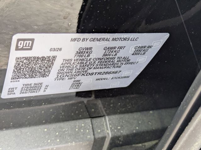 Black 2026 Chevrolet Suburban Premier 4WD 10-Speed Automatic with Overdrive EcoTec3 5.3L V8 2-Speed Active Electronic AutoTrac Transfer Case, Advanced Trailering Package, Blind Zone Steering Assist with Trailering, Dual-Pane Power Panoramic Sunroof, Hill Descent Control, Hitch View with Pan/Zoom Image Adjustment, Integrated Trailer Brake Controller, Max Trailering Package, Navigation system: Google built-in compatibility (select service plan required, terms and limitations apply), Smart Trailer Integration Indicator, Sun and Tow Package, 10 Speakers, 20 x 9 Polished Aluminum Wheels, 3.23 Rear Axle Ratio, 3rd Row 60/40 Power-Folding Split-Bench, 3rd row seats: split-bench, 4-Way Power Driver Lumbar Seat Adjuster, 4-Way Power Front Passenger Lumbar Seat Adjuster, 4-Wheel Disc Brakes, 8-Way Power Driver Seat Adjuster, 8-Way Power Front Passenger Seat Adjuster, ABS brakes, Adaptive suspension, Air Conditioning, Alloy wheels, AM/FM radio: SiriusXM with 360L, Apple CarPlay/Android Auto, Auto High-beam Headlights, Auto-dimming door mirrors, Auto-Dimming Inside Rear-View Mirror, Auto-dimming Rear-View mirror, Auto-leveling suspension, Automatic temperature control, Bose 10-Speaker Surround with CenterPoint, Brake assist, Bright Front and Rear Door Sill Plates, Bumpers: body-color, Chrome Door Handles with Body-Color Strip, Chrome Mirror Caps, Compass, Delay-off headlights, Driver door bin, Driver vanity mirror, Dual Exhaust System, Dual front impact airbags, Dual front side impact airbags, Electronic Stability Control, Emergency communication system: OnStar Services capable, Exterior Parking Camera Rear, Four wheel independent suspension, Front and Rear Black Bowtie Emblems, Front anti-roll bar, Front Bucket Seats, Front Center Armrest, Front dual zone A/C, Front fog lights, Front LED Fog Lamps, Front reading lights, Fully automatic headlights, Garage door transmitter, Heated 2nd Row Outboard Seats, Heated door mirrors, Heated Driver and Front Passenger Seats, Heated front seats, Heated Power-Adjustable Outside Mirrors, Heated rear seats, Heated Steering Wheel, Heated steering wheel, Illuminated entry, Interior Camera, LED Headlamps with LED Daytime Running Lamps, LED Tail Lamps, Low tire pressure warning, Magnetic Ride Control Suspension, Memory seat, Memory Settings, Occupant sensing airbag, Outside temperature display, Overhead airbag, Overhead console, Panic alarm, Passenger door bin, Passenger vanity mirror, Perforated Heated and Ventilated Seats, Perforated Leather Seating Surfaces, Power door mirrors, Power driver seat, Power Liftgate, Power passenger seat, Power Release 2nd Row Bucket Seats, Power steering, Power Tilt and Telescopic Steering Column, Power windows, Power-Sliding Center Floor Console, Radio data system, Radio: 17.7 Diagonal Advanced Color LCD Display, Rain sensing wipers, Rear air conditioning, Rear anti-roll bar, Rear Power Liftgate, Rear reading lights, Rear window defroster, Rear window wiper, Remote keyless entry, Security system, SiriusXM with 360L Trial Subscription, Speed control, Speed-sensing steering, Split folding rear seat, Spoiler, Steering wheel memory, Steering wheel mounted audio controls, Tachometer, Telescoping steering wheel, Tilt steering wheel, Traction control, Trip computer, Turn signal indicator mirrors, Universal Home Remote, Variably intermittent wipers, Ventilated front seats, Voltmeter, Wheel Locks (set of 4), Wheels: 22 x 9 Polished Aluminum, Wireless Apple CarPlay/Wireless Android Auto, Wireless Phone Charging, 2-Speed Active Electronic AutoTrac Transfer Case, Advanced Trailering Package, Blind Zone Steering Assist with Trailering, Dual-Pane Power Panoramic Sunroof, Hill Descent Control, Hitch View with Pan/Zoom Image Adjustment, Integrated Trailer Brake Controller, Max Trailering Package, Navigation system: Google built-in compatibility (select service plan required, terms and limitations apply), Smart Trailer Integration Indicator, Sun and Tow Package.