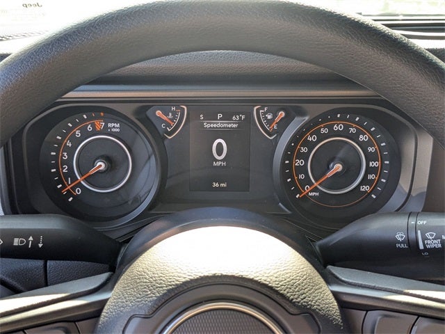 Well equipped with: Quick Order Package 24B Sport, 110 Mph Vehicle Max Speed Calibration, 12.3 Touchscreen Display, 3.73 Rear Axle Ratio, 4-Wheel Disc Brakes, 4G LTE Wi-Fi Hot Spot, 8 Speakers, ABS brakes, Air Conditioning, Alexa Built-in, AM/FM radio: SiriusXM with 360L, Apple CarPlay, Apple CarPlay/Android Auto, Black 3-Piece Hard Top, Brake assist, Compass, Connectivity - US/Canada, Delay-off headlights, Driver door bin, Driver vanity mirror, Dual front impact airbags, Dual front side impact airbags, Electronic Stability Control, Freedom Panel Storage Bag, Front anti-roll bar, Front Bucket Seats, Front Center Armrest w/Storage, Front fog lights, Front License Plate Bracket, Front reading lights, Google Android Auto, Illuminated entry, Integrated roll-over protection, Low tire pressure warning, MyFlexCare Service Plan, Normal Duty Suspension, Occupant sensing airbag, Outside temperature display, Overhead airbag, Panic alarm, ParkView Rear Back-Up Camera, Passenger door bin, Passenger vanity mirror, Power steering, Power windows, Radio data system, Radio: Uconnect 5 with 12.3 Display, Rear anti-roll bar, Rear reading lights, Rear Sliding Window, Rear Window Defroster, Remote keyless entry, Speed control, Split folding rear seat, Steering wheel mounted audio controls, Tachometer, Telescoping steering wheel, Tilt steering wheel, Traction control, Trip computer, USB Host Flip, Variably intermittent wipers, Voltmeter, and Wheels: 17 x 7.5 Black Steel Styled. Price includes: $1000 - 2026 National Stellantis Loyalty Bonus Cash . Exp. 03/02/2026