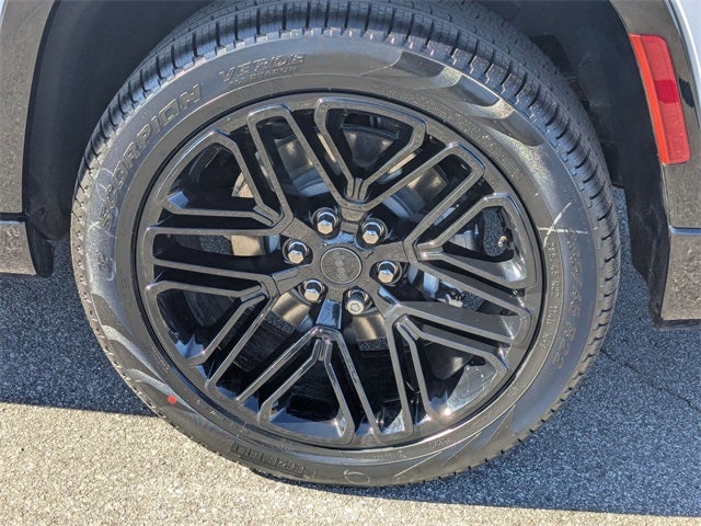 Well equipped with: ABS brakes, Active Cruise Control, Alloy wheels, Compass, Electronic Stability Control, Front dual zone A/C, Heated door mirrors, Heated Exterior Mirrors, Heated front seats, Heated rear seats, Illuminated entry, Low tire pressure warning, Navigation System, Power Liftgate, Remote keyless entry, Traction control, 118 MPH Maximum Speed Calibration, 3.55 Rear Axle Ratio, 3rd row seats: bench, 4-Wheel Disc Brakes, 9 Speakers, Air Conditioning, AM/FM radio: SiriusXM with 360L, Anti-whiplash front head restraints, Apple CarPlay/Android Auto, Audio memory, Auto Adjust in Reverse Exterior Mirrors, Auto High-beam Headlights, Auto-dimming door mirrors, Auto-Dimming Exterior Driver Mirror, Auto-dimming Rear-View mirror, Auto-leveling suspension, Automatic temperature control, Brake assist, Bumpers: body-color, Delay-off headlights, Driver door bin, Driver vanity mirror, Driver's Seat Mounted Armrest, Dual front impact airbags, Dual front side impact airbags, Emergency communication system: Jeep Connect, Exterior Mirrors Approach Lamps, Exterior Mirrors with Memory, Exterior Mirrors with Supplemental Signals, Exterior Parking Camera Rear, Four wheel independent suspension, Front anti-roll bar, Front Bucket Seats, Front Center Armrest w/Storage, Front fog lights, Front reading lights, Fully automatic headlights, Garage door transmitter, Heated steering wheel, Knee airbag, Leather Trimmed Bucket Seats, Memory seat, Normal Duty Suspension, Occupant sensing airbag, Outside temperature display, Overhead airbag, Overhead console, Panic alarm, Passenger door bin, Passenger seat mounted armrest, Passenger vanity mirror, Power door mirrors, Power driver seat, Power passenger seat, Power steering, Power windows, Radio data system, Radio: Uconnect 5 Nav with 12 Display, Rain sensing wipers, Rear air conditioning, Rear anti-roll bar, Rear reading lights, Rear seat center armrest, Rear window defroster, Rear window wiper, Reclining 3rd row seat, Security system, Speed control, Speed-sensing steering, Speed-Sensitive Wipers, Split folding rear seat, Steering wheel memory, Steering wheel mounted audio controls, Tachometer, Telescoping steering wheel, Tilt steering wheel, Trip computer, Turn signal indicator mirrors, Variably intermittent wipers, Ventilated front seats, Voltmeter, and Wheels: 20 x 9.0 Machine Face Painted Aluminum.
