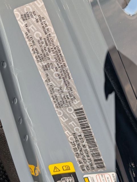 Well equipped with: Convenience Group (2-Door Passive Entry, Front Door Locks, Air Conditioning with Auto Temp Control, Air Filtering, Cluster 7.0 TFT Color Display, Emergency/Assistance Call, Heated Front Seats, Heated Steering Wheel, and Universal Garage Door Opener), Quick Order Package 22W Willys (4-Wheel Drive Swing Gate Decal, 7 and 4 Pin Wiring Harness, Advanced Brake Assist, Automatic Headlamps, Auxiliary Switches, Black Grille with Gloss Black Rings, Class II Receiver Hitch, Conventional Differential Front Axle, Corning Gorilla Glass, Dana M210 Wide HD Tube Front Axle, Dana M220 Wide Rear Axle, Daytime Running Lamps LED Accents, Deep Tint Sunscreen Windows, E-Locker Rear Axle, Enhanced Adaptive Cruise Control, Front LED Fog Lamps, Full Speed Forward Collision Warning Plus, Injection Molded Black Rear Bumper, LED Premium Reflector Headlamps, Mold in Color Bumper with Gloss Black, Molded in Color Rubicon Highline Flare, MOPAR All-Weather Floor Mats, Off-Road Plus Mode, Power Heated Mirrors, Premium Wrapped Steering Wheel, Security Alarm, Sun Visors with Illuminated Vanity Mirrors, Wheels: 17 x 7.5 Painted Black, and Willys Hood Decal), Safety Group (Auto High Beam Headlamp Control, Blind Spot and Cross Path Detection, LED Taillamps, and ParkSense Rear Park Assist System), Steel Power Dome Hood Package (Power Dome Dual Vented Hood), 12.3 Touchscreen Display, 4-Wheel Disc Brakes, 4G LTE Wi-Fi Hot Spot, 8 Speakers, ABS brakes, Air Conditioning, Alpine Premium Audio System, AM/FM radio: SiriusXM with 360L, Apple CarPlay, Apple CarPlay/Android Auto, Aux Battery, Brake assist, Compass, Connectivity - US/Canada, Delay-off headlights, Driver door bin, Driver vanity mirror, Dual front impact airbags, Dual front side impact airbags, Electronic Stability Control, For More Info, Call 800-643-2112, Front anti-roll bar, Front Bucket Seats, Front Center Armrest w/Storage, Front fog lights, Front reading lights, Google Android Auto, Illuminated entry, Integrated Center Stack Radio, Integrated roll-over protection, Low tire pressure warning, Myflexcare Service Plan, Non-Lock Fuel Cap Without Discriminator, Normal Duty Suspension, Occupant sensing airbag, Outside temperature display, Overhead airbag, Panic alarm, ParkView Rear Back-Up Camera, Passenger door bin, Passenger vanity mirror, Power steering, Power Top Quarter Window Storage Bag, Power windows, Radio data system, Radio: Uconnect 5 with 12.3 Display, Rear anti-roll bar, Rear reading lights, Rear Window Defroster, Rear Window Wiper/Washer, Remote keyless entry, Removable Rear Quarter Windows, SiriusXM Radio Service, SiriusXM with 360L, Sky One-Touch Power Top, Speed control, Split folding rear seat, Steering wheel mounted audio controls, Stop-Start Dual Battery System, Tachometer, Telescoping steering wheel, Tilt steering wheel, Traction control, Trip computer, Variably intermittent wipers, and Wheels: 17 x 7.5 Black Steel Styled. Price includes: $1000 - 2026 National Retail Bonus Cash . Exp. 03/31/2026 $1000 - 2026 National Stellantis Loyalty Bonus Cash . Exp. 03/31/2026 $2500 - 2026 National Select Inventory Bonus Cash. Exp. 01/04/2027
