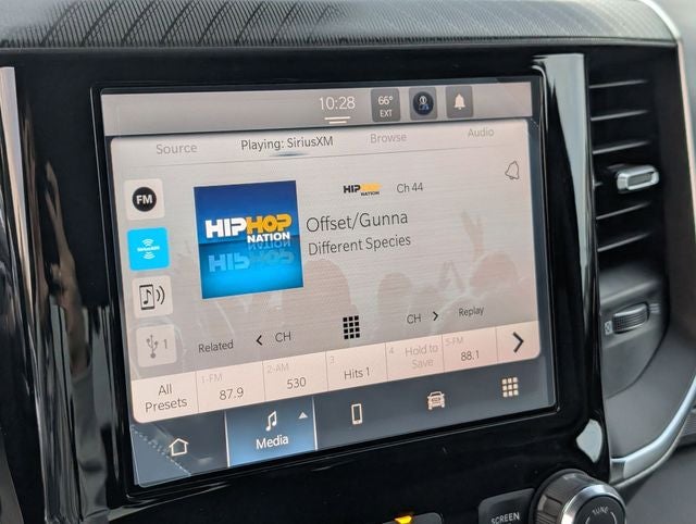 Granite Crystal Metallic Clearcoat 2026 Ram 1500 Big Horn/Lone Star 4WD 8-Speed Automatic HEMI 5.7L V8 Multi Displacement VVT eTorque 115V Auxiliary Power Outlet, 2nd Row in Floor Storage Bins, 3 Rear Seat Head Restraints, 4 Way Front Headrests, 4-Wheel Disc Brakes, 400W Inverter, 48V Belt Starter Generator, 4G LTE Wi-Fi Hot Spot, 6 Speakers, ABS brakes, Accent Color Door Handles, Accent Color Premium Power Mirrors, Accent Color Tailgate Handle, Air Conditioning, Alloy wheels, AM/FM radio, Anti-Spin Differential Rear Axle, Apple CarPlay, Apple CarPlay/Android Auto, Auto High-beam Headlights, Auto Power-Folding Mirrors, Auto-Dimming Exterior Driver Mirror, Auto-Dimming Rear-View Mirror, Bed Utility Group, Big Horn Level 1 Equipment Group, Black Exterior Mirrors, Black Exterior Truck Badging, Black Headlamp Bezels, Black Interior Accents, Black Painted Exterior Mirrors Caps, Black Premium Power Mirrors, Black Tail Lamp Bezels, Body Color Fender Flares, Body Color Front Bumper, Body Color Rear Bumper with Step Pads, Brake assist, Bucket Seats, Bumpers: chrome, Center Console Parts Module, Cloth Bucket Seats, Compass, Connectivity - US/Canada, Convex Wide-Angle Exterior Mirror Insert, Delay-off headlights, Deluxe Cloth Bucket Seats, Driver door bin, Dual Exhaust with Black Tips, Dual front impact airbags, Dual front side impact airbags, Electronic Stability Control, Exterior 115V AC Outlet, Exterior Mirrors Courtesy Lamps, Exterior Mirrors with Heating Element, Exterior Mirrors with Supplemental Signals, Front anti-roll bar, Front Bucket Seats, Front Center Armrest w/Storage, Front fog lights, Front License Plate Bracket, Front reading lights, Front Seat Back Map Pockets, Front wheel independent suspension, Full Length Floor Console, Fully automatic headlights, Global Telematics Box Module, Glove Box Lamp, Google Android Auto, GPS Antenna Input, Grille Black Surround Black Mesh, Heated door mirrors, Heated Front Seats, Heated Steering Wheel, Illuminated entry, Integrated Center Stack Radio, Integrated Voice Command with Bluetooth®, Leather Wrapped Steering Wheel, Low tire pressure warning, Manual Adjust 4-Way Driver Seat, Manual Adjust 4-Way Front Passenger Seat, Manual Folding Exterior Mirrors, MOPAR 4 Adjustable Cargo Tie-Down Hooks, Mopar Black Tubular Side Steps, MOPAR Spray in Bedliner, MyFlexCare Service Plan, Night Edition, Occupant sensing airbag, Outside temperature display, Overhead airbag, Overhead console, Panic alarm, ParkView Rear Back-Up Camera, Passenger door bin, Passenger vanity mirror, Pick-Up Box Lighting, Power 2-Way Driver Lumbar Adjust, Power Adjust 8-Way Driver Seat, Power Adjustable Pedals, Power door mirrors, Power steering, Power windows, Quick Order Package 27Z Big Horn, Radio data system, Radio: Uconnect 5 W with 8.4 Display, RAM Grille Badge - Black, RAM Grille Badge - Chrome, Rear 60/40 Folding Seat, Rear anti-roll bar, Rear Center Armrest, Rear Dome with on/Off Switch Lamp, Rear Power Sliding Window, Rear step bumper, Rear Window Defroster, Remote keyless entry, SiriusXM Radio Service, SiriusXM Satellite Radio, Speed control, Steering Wheel Mounted Audio Controls, Sun Visors with Illuminated Vanity Mirrors, Supplier Part Tracking (J-1), Tachometer, Telescoping steering wheel, Tilt steering wheel, Traction control, Tri-Fold Tonneau Cover, Trip computer, Universal Garage Door Opener, USB Host Flip, Variably intermittent wipers, Voltmeter, Wheels: 20 x 9.0 Aluminum Painted Clad.