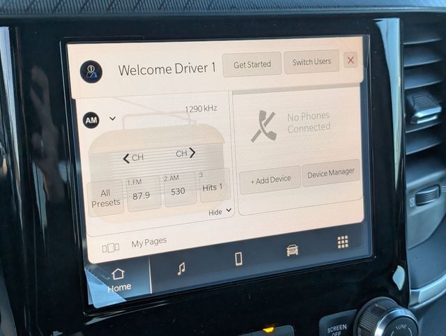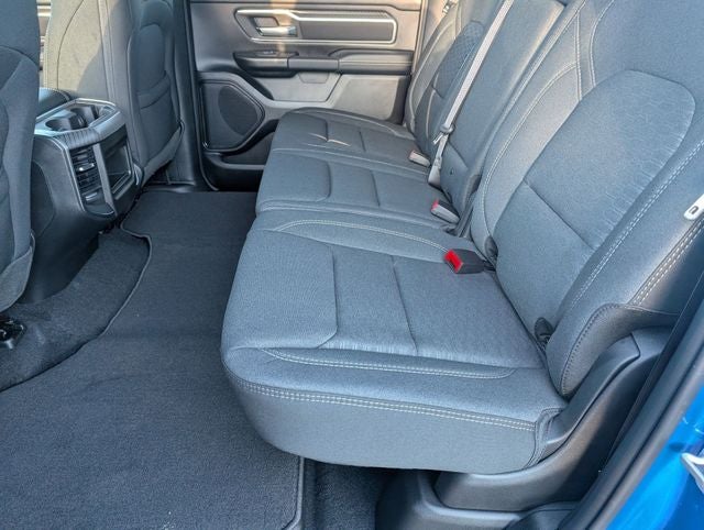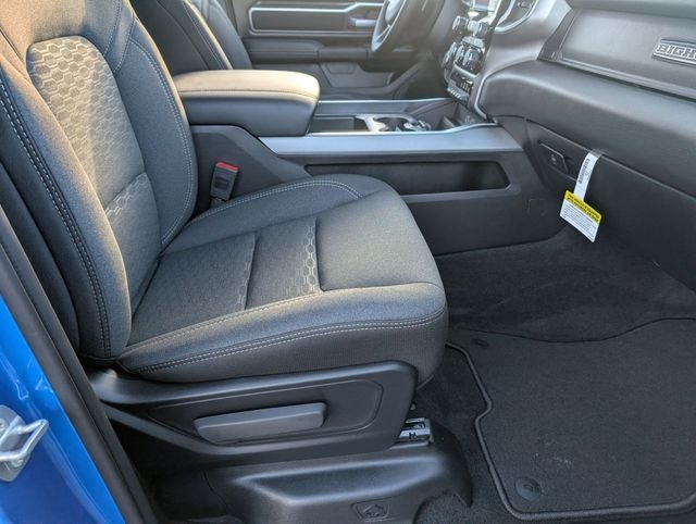 Hydro Blue Pearlcoat 2026 Ram 1500 Big Horn/Lone Star 4WD 8-Speed Automatic HEMI 5.7L V8 Multi Displacement VVT eTorque 115V Auxiliary Power Outlet, 2nd Row in Floor Storage Bins, 3 Rear Seat Head Restraints, 4 Way Front Headrests, 4-Wheel Disc Brakes, 400W Inverter, 48V Belt Starter Generator, 4G LTE Wi-Fi Hot Spot, 6 Speakers, ABS brakes, Accent Color Door Handles, Accent Color Premium Power Mirrors, Accent Color Tailgate Handle, Air Conditioning, Alloy wheels, AM/FM radio, Anti-Spin Differential Rear Axle, Apple CarPlay, Apple CarPlay/Android Auto, Auto High-beam Headlights, Auto Power-Folding Mirrors, Auto-Dimming Exterior Driver Mirror, Auto-Dimming Rear-View Mirror, Bed Utility Group, Big Horn Level 1 Equipment Group, Black Exterior Mirrors, Black Exterior Truck Badging, Black Headlamp Bezels, Black Interior Accents, Black Painted Exterior Mirrors Caps, Black Premium Power Mirrors, Black Tail Lamp Bezels, Body Color Fender Flares, Body Color Front Bumper, Body Color Rear Bumper with Step Pads, Brake assist, Bucket Seats, Bumpers: chrome, Center Console Parts Module, Cloth Bucket Seats, Compass, Connectivity - US/Canada, Convex Wide-Angle Exterior Mirror Insert, Delay-off headlights, Deluxe Cloth Bucket Seats, Driver door bin, Dual Exhaust with Black Tips, Dual front impact airbags, Dual front side impact airbags, Electronic Stability Control, Exterior 115V AC Outlet, Exterior Mirrors Courtesy Lamps, Exterior Mirrors with Heating Element, Exterior Mirrors with Supplemental Signals, Front anti-roll bar, Front Bucket Seats, Front Center Armrest w/Storage, Front fog lights, Front License Plate Bracket, Front reading lights, Front Seat Back Map Pockets, Front wheel independent suspension, Full Length Floor Console, Fully automatic headlights, Global Telematics Box Module, Glove Box Lamp, Google Android Auto, GPS Antenna Input, Grille Black Surround Black Mesh, Heated door mirrors, Heated Front Seats, Heated Steering Wheel, Illuminated entry, Integrated Center Stack Radio, Integrated Voice Command with Bluetooth®, Leather Wrapped Steering Wheel, Low tire pressure warning, Manual Adjust 4-Way Driver Seat, Manual Adjust 4-Way Front Passenger Seat, Manual Folding Exterior Mirrors, MOPAR 4 Adjustable Cargo Tie-Down Hooks, Mopar Black Tubular Side Steps, MOPAR Spray in Bedliner, MyFlexCare Service Plan, Night Edition, Occupant sensing airbag, Outside temperature display, Overhead airbag, Overhead console, Panic alarm, ParkView Rear Back-Up Camera, Passenger door bin, Passenger vanity mirror, Pick-Up Box Lighting, Power 2-Way Driver Lumbar Adjust, Power Adjust 8-Way Driver Seat, Power Adjustable Pedals, Power door mirrors, Power steering, Power windows, Quick Order Package 27Z Big Horn, Radio data system, Radio: Uconnect 5 W with 8.4 Display, RAM Grille Badge - Black, RAM Grille Badge - Chrome, Rear 60/40 Folding Seat, Rear anti-roll bar, Rear Center Armrest, Rear Dome with on/Off Switch Lamp, Rear Power Sliding Window, Rear step bumper, Rear Window Defroster, Remote keyless entry, SiriusXM Radio Service, SiriusXM Satellite Radio, Speed control, Steering Wheel Mounted Audio Controls, Sun Visors with Illuminated Vanity Mirrors, Supplier Part Tracking (J-1), Tachometer, Telescoping steering wheel, Tilt steering wheel, Traction control, Tri-Fold Tonneau Cover, Trip computer, Universal Garage Door Opener, USB Host Flip, Variably intermittent wipers, Voltmeter, Wheels: 20 x 9.0 Aluminum Painted Clad.