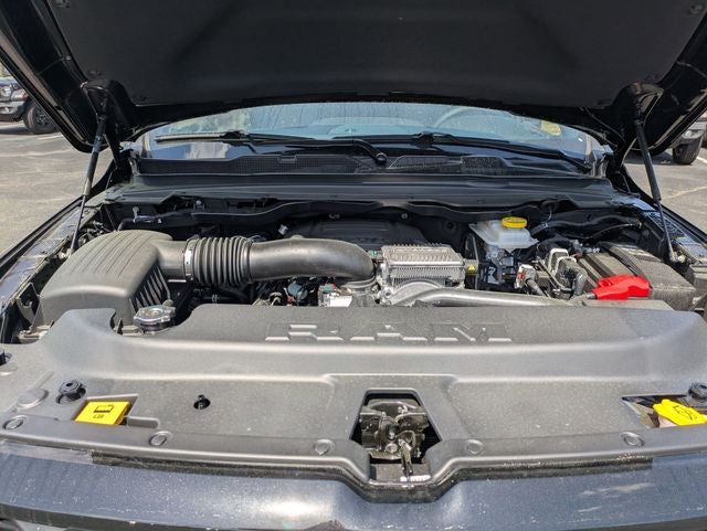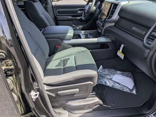 Diamond Black Crystal Pearlcoat 2026 Ram 1500 Big Horn/Lone Star 4WD 8-Speed Automatic HEMI 5.7L V8 Multi Displacement VVT eTorque 115V Auxiliary Power Outlet, 2nd Row in Floor Storage Bins, 3 Rear Seat Head Restraints, 4 Way Front Headrests, 4-Wheel Disc Brakes, 400W Inverter, 48V Belt Starter Generator, 4G LTE Wi-Fi Hot Spot, 6 Speakers, ABS brakes, Accent Color Door Handles, Accent Color Premium Power Mirrors, Accent Color Tailgate Handle, Air Conditioning, Alloy wheels, AM/FM radio, Anti-Spin Differential Rear Axle, Apple CarPlay, Apple CarPlay/Android Auto, Auto High-beam Headlights, Auto Power-Folding Mirrors, Auto-Dimming Exterior Driver Mirror, Auto-Dimming Rear-View Mirror, Bed Utility Group, Big Horn Level 1 Equipment Group, Black Exterior Mirrors, Black Exterior Truck Badging, Black Headlamp Bezels, Black Interior Accents, Black Painted Exterior Mirrors Caps, Black Premium Power Mirrors, Black Tail Lamp Bezels, Body Color Fender Flares, Body Color Front Bumper, Body Color Rear Bumper with Step Pads, Brake assist, Bucket Seats, Bumpers: chrome, Center Console Parts Module, Cloth Bucket Seats, Compass, Connectivity - US/Canada, Convex Wide-Angle Exterior Mirror Insert, Delay-off headlights, Deluxe Cloth Bucket Seats, Driver door bin, Dual Exhaust with Black Tips, Dual front impact airbags, Dual front side impact airbags, Electronic Stability Control, Exterior 115V AC Outlet, Exterior Mirrors Courtesy Lamps, Exterior Mirrors with Heating Element, Exterior Mirrors with Supplemental Signals, Front anti-roll bar, Front Bucket Seats, Front Center Armrest w/Storage, Front fog lights, Front License Plate Bracket, Front reading lights, Front Seat Back Map Pockets, Front wheel independent suspension, Full Length Floor Console, Fully automatic headlights, Global Telematics Box Module, Glove Box Lamp, Google Android Auto, GPS Antenna Input, Grille Black Surround Black Mesh, Heated door mirrors, Heated Front Seats, Heated Steering Wheel, Illuminated entry, Integrated Center Stack Radio, Integrated Voice Command with Bluetooth®, Leather Wrapped Steering Wheel, Low tire pressure warning, Manual Adjust 4-Way Driver Seat, Manual Adjust 4-Way Front Passenger Seat, Manual Folding Exterior Mirrors, MOPAR 4 Adjustable Cargo Tie-Down Hooks, Mopar Black Tubular Side Steps, MOPAR Spray in Bedliner, MyFlexCare Service Plan, Night Edition, Occupant sensing airbag, Outside temperature display, Overhead airbag, Overhead console, Panic alarm, ParkView Rear Back-Up Camera, Passenger door bin, Passenger vanity mirror, Pick-Up Box Lighting, Power 2-Way Driver Lumbar Adjust, Power Adjust 8-Way Driver Seat, Power Adjustable Pedals, Power door mirrors, Power steering, Power windows, Quick Order Package 27Z Big Horn, Radio data system, Radio: Uconnect 5 W with 8.4 Display, RAM Grille Badge - Black, RAM Grille Badge - Chrome, Rear 60/40 Folding Seat, Rear anti-roll bar, Rear Center Armrest, Rear Dome with on/Off Switch Lamp, Rear Power Sliding Window, Rear step bumper, Rear Window Defroster, Remote keyless entry, SiriusXM Radio Service, SiriusXM Satellite Radio, Speed control, Steering Wheel Mounted Audio Controls, Sun Visors with Illuminated Vanity Mirrors, Supplier Part Tracking (J-1), Tachometer, Telescoping steering wheel, Tilt steering wheel, Traction control, Tri-Fold Tonneau Cover, Trip computer, Universal Garage Door Opener, USB Host Flip, Variably intermittent wipers, Voltmeter, Wheels: 20 x 9.0 Aluminum Painted Clad.