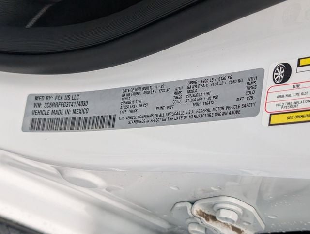 Well equipped with: Big Horn Level 1 Equipment Group (115V Auxiliary Power Outlet, 2nd Row in Floor Storage Bins, 3 Rear Seat Head Restraints, 4 Way Front Headrests, 400W Inverter, Auto Power-Folding Mirrors, Auto-Dimming Exterior Driver Mirror, Auto-Dimming Rear-View Mirror, Black Exterior Mirrors, Black Premium Power Mirrors, Body Color Fender Flares, Bucket Seats, Center Console Parts Module, Convex Wide-Angle Exterior Mirror Insert, Deluxe Cloth Bucket Seats, Exterior Mirrors Courtesy Lamps, Exterior Mirrors with Heating Element, Exterior Mirrors with Supplemental Signals, Front Seat Back Map Pockets, Full Length Floor Console, Glove Box Lamp, Heated Front Seats, Heated Steering Wheel, Leather Wrapped Steering Wheel, Manual Adjust 4-Way Front Passenger Seat, Power 2-Way Driver Lumbar Adjust, Power Adjust 8-Way Driver Seat, Power Adjustable Pedals, Rear 60/40 Folding Seat, Rear Center Armrest, Rear Dome with on/Off Switch Lamp, Rear Power Sliding Window, Rear Window Defroster, SiriusXM Radio Service, SiriusXM Satellite Radio, Steering Wheel Mounted Audio Controls, Sun Visors with Illuminated Vanity Mirrors, and Universal Garage Door Opener), Quick Order Package 23Z Big Horn, 3.21 Rear Axle Ratio, 4-Wheel Disc Brakes, 48V Belt Starter Generator, 4G LTE Wi-Fi Hot Spot, 6 Speakers, ABS brakes, Air Conditioning, Alloy wheels, AM/FM radio, Apple CarPlay, Apple CarPlay/Android Auto, Auto High-beam Headlights, Brake assist, Bumpers: chrome, Cloth Bucket Seats, Compass, Connectivity - US/Canada, Delay-off headlights, Driver door bin, Dual front impact airbags, Dual front side impact airbags, Electronic Stability Control, Front anti-roll bar, Front Bucket Seats, Front Center Armrest w/Storage, Front fog lights, Front License Plate Bracket, Front reading lights, Front wheel independent suspension, Fully automatic headlights, Global Telematics Box Module, Google Android Auto, GPS Antenna Input, Heated door mirrors, Illuminated entry, Integrated Center Stack Radio, Integrated Voice Command with Bluetooth®, Low tire pressure warning, Manual Adjust 4-Way Driver Seat, Manual Folding Exterior Mirrors, MyFlexCare Service Plan, Occupant sensing airbag, Outside temperature display, Overhead airbag, Overhead console, Panic alarm, ParkView Rear Back-Up Camera, Passenger door bin, Passenger vanity mirror, Power door mirrors, Power steering, Power windows, Radio data system, Radio: Uconnect 5 W with 8.4 Display, RAM Grille Badge - Chrome, Rear anti-roll bar, Rear step bumper, Remote keyless entry, Speed control, Supplier Part Tracking (J-1), Tachometer, Telescoping steering wheel, Tilt steering wheel, Traction control, Trip computer, USB Host Flip, Variably intermittent wipers, Voltmeter, and Wheels: 18 x 8 Cast-Aluminum Painted. Price includes: $1000 - 2026 Southeast BC Retail Bonus Cash. Exp. 04/30/2026 $3500 - 2026 National Retail Bonus Cash . Exp. 04/30/2026