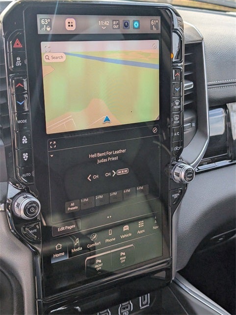 Well equipped with: Bed Utility Group (Exterior 115V AC Outlet, MOPAR 4 Adjustable Cargo Tie-Down Hooks, and MOPAR Spray in Bedliner), Laramie Level 2 Equipment Group (14.4 Touchscreen Display, 4G LTE Wi-Fi Hot Spot, Cluster 12 TFT Color Display, Connected Travel and Traffic Services, Connectivity - US/Canada, Front Passenger Interactive Display, GPS Navigation, Harman/Kardon 19 Speaker Premium Sound, Integrated Center Stack Radio, Integrated Voice Command with Bluetooth®, Power Tailgate, Radio: Uconnect 5 Nav with 14.4 Display, Rain Sensitive Windshield Wipers, SiriusXM Radio Service, SiriusXM with 360L, and USB Host Flip), Quick Order Package 21H Laramie, Sport Appearance Package (Accent Color Premium Power Mirrors, Auto Power-Folding Mirrors, Auto-Dimming Exterior Driver Mirror, Black Interior Accents, Black Painted Exterior Mirrors Caps, Body Color Front Bumper, Body Color Rear Bumper with Step Pads, Bridgestone Brand Tires, Convex Wide-Angle Exterior Mirror Insert, Exterior Mirrors Courtesy Lamps, Exterior Mirrors with Heating Element, Exterior Mirrors with Memory, Exterior Mirrors with Supplemental Signals, Grille Surround 3 Body Color Tex 2 Black, RAM Grille Badge - Chrome, and Sport Performance Hood), 10 Speakers, 3.55 Rear Axle Ratio, 4-Wheel Disc Brakes, ABS brakes, Active Noise Control System, Adjustable pedals, Air Conditioning, Alloy wheels, AM/FM radio: SiriusXM with 360L, Apple CarPlay/Android Auto, Audio memory, Auto High-beam Headlights, Auto-dimming door mirrors, Auto-dimming Rear-View mirror, Automatic temperature control, Brake assist, Bumpers: chrome, Chrome Exterior Mirrors, Compass, Delay-off headlights, Driver door bin, Driver vanity mirror, Dual front impact airbags, Dual front side impact airbags, Electronic Stability Control, Front anti-roll bar, Front Bucket Seats, Front Center Armrest w/Storage, Front dual zone A/C, Front fog lights, Front License Plate Bracket, Front reading lights, Front wheel independent suspension, Fully automatic headlights, Garage door transmitter, Heated door mirrors, Heated front seats, Heated rear seats, Heated steering wheel, Illuminated entry, Leather steering wheel, Leather Trimmed Bucket Seats, Low tire pressure warning, Memory seat, MyFlexCare Service Plan, Navigation System, Occupant sensing airbag, Off-Road Information Pages, Outside temperature display, Overhead airbag, Overhead console, Panic alarm, ParkView Rear Back-Up Camera, Passenger door bin, Passenger vanity mirror, Pedal memory, Power door mirrors, Power driver seat, Power passenger seat, Power steering, Power windows, Radio data system, Radio: Uconnect 5 Navigation with 12.0 Display, Rear anti-roll bar, Rear reading lights, Rear seat center armrest, Rear step bumper, Remote keyless entry, Security system, Speed control, Split folding rear seat, Steering wheel mounted audio controls, Tachometer, Telescoping steering wheel, Tilt steering wheel, Traction control, Trip computer, Turn signal indicator mirrors, Variably intermittent wipers, Ventilated front seats, Voltmeter, and Wheels: 20 x 9 Premium Paint/Polish. Price includes: $1000 - 2026 National Bonus Cash . Exp. 03/02/2026 $3500 - 2026 National Retail Consumer Cash . Exp. 03/02/2026