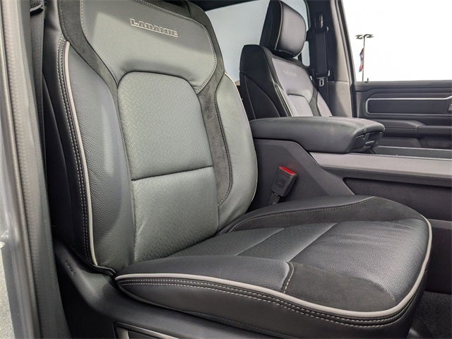 Well equipped with: Bed Utility Group (Exterior 115V AC Outlet, MOPAR 4 Adjustable Cargo Tie-Down Hooks, and MOPAR Spray in Bedliner), Laramie Level 2 Equipment Group (14.4 Touchscreen Display, 4G LTE Wi-Fi Hot Spot, Cluster 12 TFT Color Display, Connected Travel and Traffic Services, Connectivity - US/Canada, Front Passenger Interactive Display, GPS Navigation, Harman/Kardon 19 Speaker Premium Sound, Integrated Center Stack Radio, Integrated Voice Command with Bluetooth®, Power Tailgate, Radio: Uconnect 5 Nav with 14.4 Display, Rain Sensitive Windshield Wipers, SiriusXM Radio Service, SiriusXM with 360L, and USB Host Flip), Quick Order Package 21H Laramie, Sport Appearance Package (Accent Color Premium Power Mirrors, Auto Power-Folding Mirrors, Auto-Dimming Exterior Driver Mirror, Black Interior Accents, Black Painted Exterior Mirrors Caps, Body Color Front Bumper, Body Color Rear Bumper with Step Pads, Bridgestone Brand Tires, Convex Wide-Angle Exterior Mirror Insert, Exterior Mirrors Courtesy Lamps, Exterior Mirrors with Heating Element, Exterior Mirrors with Memory, Exterior Mirrors with Supplemental Signals, Grille Surround 3 Body Color Tex 2 Black, RAM Grille Badge - Chrome, and Sport Performance Hood), 10 Speakers, 3.55 Rear Axle Ratio, 4-Wheel Disc Brakes, ABS brakes, Active Noise Control System, Air Conditioning, Alloy wheels, AM/FM radio: SiriusXM with 360L, Apple CarPlay/Android Auto, Audio memory, Auto High-beam Headlights, Auto-dimming door mirrors, Auto-dimming Rear-View mirror, Automatic temperature control, Brake assist, Bumpers: chrome, Chrome Exterior Mirrors, Compass, Delay-off headlights, Dome Dual LED Reading Lamp, Driver door bin, Driver vanity mirror, Dual front impact airbags, Dual front side impact airbags, Dual-Pane Panoramic Sunroof, Electronic Stability Control, Front anti-roll bar, Front Bucket Seats, Front Center Armrest w/Storage, Front dual zone A/C, Front fog lights, Front License Plate Bracket, Front reading lights, Front wheel independent suspension, Fully automatic headlights, Garage door transmitter, Heated door mirrors, Heated front seats, Heated rear seats, Heated steering wheel, Illuminated entry, Leather steering wheel, Leather Trimmed Bucket Seats, LED Dome/Reading Lamp, Low tire pressure warning, Memory seat, Multi-Function Tailgate, MyFlexCare Service Plan, Navigation System, Occupant sensing airbag, Off-Road Information Pages, Outside temperature display, Overhead airbag, Overhead console, Panic alarm, ParkView Rear Back-Up Camera, Passenger door bin, Passenger vanity mirror, Power Deployable Running Boards, Power door mirrors, Power driver seat, Power passenger seat, Power steering, Power windows, Radio data system, Radio: Uconnect 5 Navigation with 12.0 Display, RAM's Head Badge, RamBox Cargo Management System, Rear anti-roll bar, Rear reading lights, Rear seat center armrest, Rear step bumper, Rear Wheelhouse Liners, Remote keyless entry, Security system, Speed control, Split folding rear seat, Steering wheel mounted audio controls, Tachometer, Telescoping steering wheel, Tilt steering wheel, Traction control, Trailer Brake Control, Trip computer, Turn signal indicator mirrors, Variably intermittent wipers, Ventilated front seats, Voltmeter, and Wheels: 20 x 9 Premium Paint/Polish. Price includes: $3500 - 2026 National Retail Consumer Cash . Exp. 02/02/2026