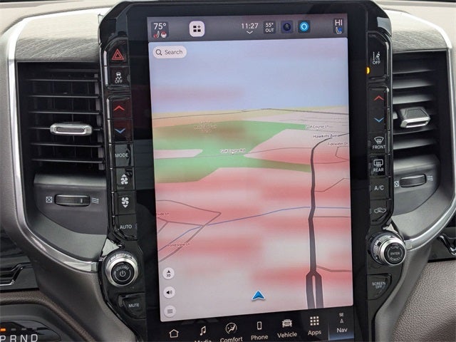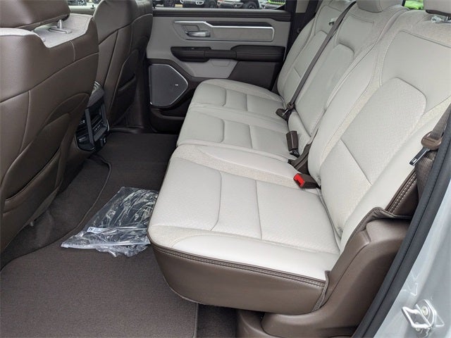 Silver Zynith 2026 Ram 1500 Laramie 4WD 8-Speed Automatic HEMI 5.7L V8 Multi Displacement VVT eTorque 10 Speakers, 14.4 Touchscreen Display, 33 Gallon Fuel Tank, 4-Wheel Disc Brakes, 4G LTE Wi-Fi Hot Spot, ABS brakes, Accent Color Premium Power Mirrors, Active Noise Control System, Adjustable pedals, Air Conditioning, Alloy wheels, AM/FM radio: SiriusXM with 360L, Apple CarPlay/Android Auto, Audio memory, Auto High-beam Headlights, Auto Power-Folding Mirrors, Auto-dimming door mirrors, Auto-Dimming Exterior Driver Mirror, Auto-dimming Rear-View mirror, Automatic temperature control, Bed Utility Group, Black Painted Exterior Mirrors Caps, Body Color Front Bumper, Body Color Rear Bumper with Step Pads, Brake assist, Bumpers: chrome, Chrome Exterior Mirrors, Cluster 12 TFT Color Display, Compass, Connected Travel and Traffic Services, Connectivity - US/Canada, Convex Wide-Angle Exterior Mirror Insert, Delay-off headlights, Dome Dual LED Reading Lamp, Driver door bin, Driver vanity mirror, Dual front impact airbags, Dual front side impact airbags, Dual-Pane Panoramic Sunroof, Electronic Stability Control, Exterior 115V AC Outlet, Exterior Mirrors Courtesy Lamps, Exterior Mirrors with Heating Element, Exterior Mirrors with Memory, Exterior Mirrors with Supplemental Signals, Front anti-roll bar, Front Bucket Seats, Front Center Armrest w/Storage, Front dual zone A/C, Front fog lights, Front License Plate Bracket, Front Passenger Interactive Display, Front reading lights, Front wheel independent suspension, Fully automatic headlights, Garage door transmitter, GPS Navigation, Grille Surround 3 Body Color Tex 4 Chrome, Harman/Kardon 19 Speaker Premium Sound, Heated door mirrors, Heated front seats, Heated rear seats, Heated steering wheel, Illuminated entry, Integrated Center Stack Radio, Integrated Voice Command with Bluetooth®, Laramie Level 2 Equipment Group, Laramie Preferred Package, Leather steering wheel, Leather Trimmed Bucket Seats, LED Dome/Reading Lamp, Low tire pressure warning, Memory seat, MOPAR 4 Adjustable Cargo Tie-Down Hooks, MOPAR Spray in Bedliner, MyFlexCare Service Plan, Navigation System, Occupant sensing airbag, Off-Road Information Pages, Outside temperature display, Overhead airbag, Overhead console, Panic alarm, ParkView Rear Back-Up Camera, Passenger door bin, Passenger vanity mirror, Pedal memory, Pirelli Brand Tires, Power Deployable Running Boards, Power door mirrors, Power driver seat, Power passenger seat, Power steering, Power Tailgate, Power windows, Quick Order Package 27H Laramie, Radio data system, Radio: Uconnect 5 Nav with 14.4 Display, Radio: Uconnect 5 Navigation with 12.0 Display, Rain Sensitive Windshield Wipers, RAM Grille Badge - Chrome, Rear anti-roll bar, Rear reading lights, Rear seat center armrest, Rear step bumper, Remote keyless entry, Security system, SiriusXM Radio Service, SiriusXM with 360L, Speed control, Split folding rear seat, Steering wheel mounted audio controls, Tachometer, Telescoping steering wheel, Tilt steering wheel, Tow Hooks, Traction control, Trailer Brake Control, Tri-Fold Tonneau Cover, Trip computer, Turn signal indicator mirrors, USB Host Flip, Variably intermittent wipers, Ventilated front seats, Voltmeter, Wheels: 20 x 9 Premium Paint/Polish, Wheels: 22 x 9 Forged Aluminum.