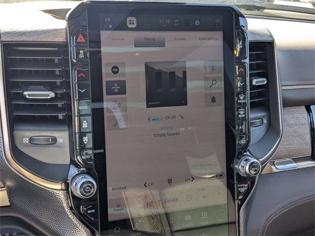 Granite Crystal Metallic Clearcoat 2026 Ram 1500 Limited 4WD 8-Speed Automatic 3.0L I6 12-Way/1-Way Trailer Connector, 14.4 Touchscreen Display, 19 Speakers, 240 Amp Alternator, 3.92 Rear Axle Ratio, 4-Wheel Disc Brakes, 4G LTE Wi-Fi Hot Spot, ABS brakes, Active Noise Control System, Adjustable pedals, Air Conditioning, Alloy wheels, AM/FM radio, Apple CarPlay, Apple CarPlay/Android Auto, Audio memory, Auto High-beam Headlights, Auto Power-Folding Mirrors, Auto-dimming door mirrors, Auto-Dimming Exterior Driver Mirror, Auto-dimming Rear-View mirror, Auto-leveling suspension, Automatic temperature control, Bodyside moldings, Brake assist, Bumpers: chrome, Chrome Exterior Mirrors, Compass, Connected Travel and Traffic Services, Connectivity - US/Canada, Convex Wide-Angle Exterior Mirror Insert, Delay-off headlights, Disassociated Touchscreen Display, Dome Dual LED Reading Lamp, Driver door bin, Driver vanity mirror, Drowsy Driver Detection, Dual front impact airbags, Dual front side impact airbags, Dual-Pane Panoramic Sunroof, Electronic Stability Control, Evasive Steer Assist, Exterior 115V AC Outlet, Exterior Mirrors Courtesy Lamps, Exterior Mirrors with Heating Element, Exterior Mirrors with Memory, Exterior Mirrors with Supplemental Signals, Exterior Parking Camera Rear, Front anti-roll bar, Front Bucket Seats, Front Center Armrest w/Storage, Front dual zone A/C, Front fog lights, Front License Plate Bracket, Front reading lights, Front wheel independent suspension, Fully automatic headlights, Garage door transmitter, Genuine wood console insert, Genuine wood dashboard insert, Genuine wood door panel insert, Global Telematics Box Module, Google Android Auto, GPS Antenna Input, GPS Navigation, Grille Surround 4 Chrome Texture 5 Chrome, Hands-Free Active Driving Assist System, HD Radio, Heads-Up Display, Heated door mirrors, Heated front seats, Heated rear seats, Heated steering wheel, Illuminated entry, Integrated Center Stack Radio, Integrated Voice Command with Bluetooth®, Intersection Collision Assist System, Leather steering wheel, LED CHMSL Lamp, LED Dome/Reading Lamp, Limited Level A Equipment Group, Longhorn Badge, Longhorn Instrument Cluster Theme 3, Low tire pressure warning, Memory seat, Multi-Function Tailgate, MyFlexCare Service Plan, Navigation System, Occupant sensing airbag, Outside temperature display, Overhead airbag, Overhead console, Panic alarm, Passenger door bin, Passenger vanity mirror, Pedal memory, Pirelli Brand Tires, Power door mirrors, Power driver seat, Power passenger seat, Power steering, Power windows, Premium Door Trim Panel, Premium Filigree Leather Seats, Premium Quilted Leather Bucket Seats, Quick Order Package 22K Longhorn, Radio data system, Radio: Uconnect 5 Nav with 14.4 Display, Radio: Uconnect 5 Navigation with 12.0 Display, Rain sensing wipers, RAM's Head Badge, RamBox Cargo Management System, Rear anti-roll bar, Rear reading lights, Rear seat center armrest, Rear step bumper, Rear window defroster, Remote keyless entry, Remote Tailgate Release, Security system, SiriusXM Radio Service, SiriusXM with 360L, Smartphone as a Key Capable, Speed control, Split folding rear seat, Steering wheel mounted audio controls, Surround View Camera System, Tachometer, Telescoping steering wheel, Tilt steering wheel, Traction control, Traffic Sign Recognition, Trailer Brake Control, Tri-Fold Tonneau Cover, Trip computer, Turn signal indicator mirrors, USB Host Flip, Variably intermittent wipers, Ventilated front seats, Ventilated rear seats, Voltmeter, Warm Chrome Key Fob, Wheels: 20 x 9 Premium Paint/Polished, Wheels: 22 x 9 Premium Paint/Polished.