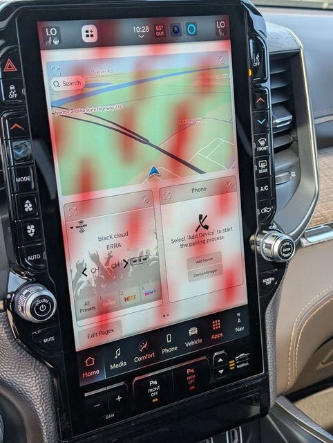 Well equipped with: Bed Utility Group (Exterior 115V AC Outlet and MOPAR 4 Adjustable Cargo Tie-Down Hooks), Body Color Bumper Group (Body Color Front Bumper and Body Color Rear Bumper with Step Pads), Limited Level An Equipment Group (12-Way/1-Way Trailer Connector, 14.4 Touchscreen Display, 240 Amp Alternator, 4G LTE Wi-Fi Hot Spot, Apple CarPlay, Connected Travel and Traffic Services, Connectivity - US/Canada, Disassociated Touchscreen Display, Drowsy Driver Detection, Evasive Steer Assist, Global Telematics Box Module, Google Android Auto, GPS Antenna Input, GPS Navigation, Hands-Free Active Driving Assist System, HD Radio, Heads-Up Display, Integrated Center Stack Radio, Integrated Voice Command with Bluetooth®, Intersection Collision Assist System, LED CHMSL Lamp, Radio: Uconnect 5 Nav with 14.4 Display, RamBox Cargo Management System, SiriusXM Radio Service, SiriusXM with 360L, Smartphone as a Key Capable, Surround View Camera System, Traffic Sign Recognition, Tri-Fold Tonneau Cover, and USB Host Flip), Quick Order Package 22K Longhorn (Grille Surround 4 Chrome Texture 5 Chrome, Longhorn Badge, Longhorn Instrument Cluster Theme 3, Premium Door Trim Panel, Premium Filigree Leather Seats, and Warm Chrome Key Fob), 19 Speakers, 3.92 Rear Axle Ratio, 4-Wheel Disc Brakes, ABS brakes, Active Noise Control System, Adjustable pedals, Air Conditioning, Alloy wheels, AM/FM radio, Apple CarPlay/Android Auto, Audio memory, Auto High-beam Headlights, Auto Power-Folding Mirrors, Auto-dimming door mirrors, Auto-Dimming Exterior Driver Mirror, Auto-dimming Rear-View mirror, Auto-leveling suspension, Automatic temperature control, Bodyside moldings, Brake assist, Bumpers: chrome, Chrome Exterior Mirrors, Compass, Convex Wide-Angle Exterior Mirror Insert, Delay-off headlights, Dome Dual LED Reading Lamp, Driver door bin, Driver vanity mirror, Dual front impact airbags, Dual front side impact airbags, Dual-Pane Panoramic Sunroof, Electronic Stability Control, Exterior Mirrors Courtesy Lamps, Exterior Mirrors with Heating Element, Exterior Mirrors with Memory, Exterior Mirrors with Supplemental Signals, Exterior Parking Camera Rear, Front anti-roll bar, Front Bucket Seats, Front Center Armrest w/Storage, Front dual zone A/C, Front fog lights, Front License Plate Bracket, Front reading lights, Front wheel independent suspension, Fully automatic headlights, Garage door transmitter, Genuine wood console insert, Genuine wood dashboard insert, Genuine wood door panel insert, Heated door mirrors, Heated front seats, Heated rear seats, Heated steering wheel, Illuminated entry, Leather steering wheel, LED Dome/Reading Lamp, Low tire pressure warning, Memory seat, Multi-Function Tailgate, MyFlexCare Service Plan, Navigation System, Occupant sensing airbag, Outside temperature display, Overhead airbag, Overhead console, Panic alarm, Passenger door bin, Passenger vanity mirror, Pedal memory, Power door mirrors, Power driver seat, Power passenger seat, Power steering, Power windows, Premium Quilted Leather Bucket Seats, Radio data system, Radio: Uconnect 5 Navigation with 12.0 Display, Rain sensing wipers, RAM's Head Badge, Rear anti-roll bar, Rear reading lights, Rear seat center armrest, Rear step bumper, Rear window defroster, Remote keyless entry, Remote Tailgate Release, Security system, Speed control, Split folding rear seat, Steering wheel mounted audio controls, Tachometer, Telescoping steering wheel, Tilt steering wheel, Traction control, Trailer Brake Control, Trip computer, Turn signal indicator mirrors, Variably in Price includes: $3500 - 2026 National Retail Bonus Cash . Exp