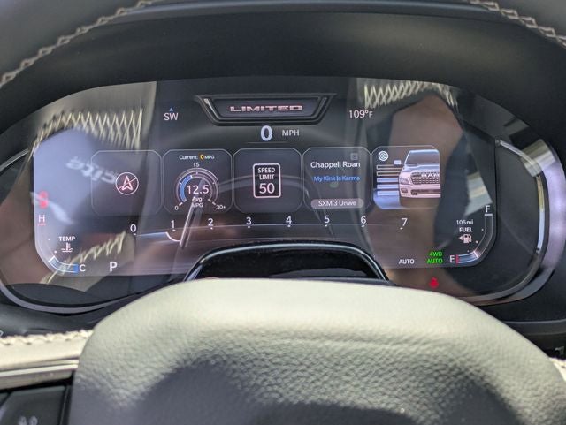 Silver Zynith 2026 Ram 1500 Limited 4WD 8-Speed Automatic 3.0L I6 12-Way/1-Way Trailer Connector, 14.4 Touchscreen Display, 19 Speakers, 240 Amp Alternator, 3.92 Rear Axle Ratio, 4-Wheel Disc Brakes, 4G LTE Wi-Fi Hot Spot, ABS brakes, Accent Color Door Handles, Accent Color Premium Power Mirrors, Accent Color Tailgate Handle, Active Noise Control System, Adjustable pedals, Air Conditioning, Alloy wheels, AM/FM radio, Apple CarPlay, Apple CarPlay/Android Auto, Audio memory, Auto High-beam Headlights, Auto Power-Folding Mirrors, Auto-dimming door mirrors, Auto-Dimming Exterior Driver Mirror, Auto-dimming Rear-View mirror, Auto-leveling suspension, Automatic temperature control, Bed Utility Group, Black Day Light Opening Moldings, Black Exterior Truck Badging, Black Grille Surround Texture 7 Black, Black Headlamp Bezels, Black Painted Exterior Mirrors Caps, Black Tail Lamp Bezels, Body Color Front Bumper, Body Color Rear Bumper with Step Pads, Bodyside moldings, Brake assist, Bumpers: chrome, Chrome Exterior Mirrors, Compass, Connected Travel and Traffic Services, Connectivity - US/Canada, Convex Wide-Angle Exterior Mirror Insert, Delay-off headlights, Disassociated Touchscreen Display, Dome Dual LED Reading Lamp, Driver door bin, Driver vanity mirror, Drowsy Driver Detection, Dual Exhaust with Black Tips, Dual front impact airbags, Dual front side impact airbags, Dual-Pane Panoramic Sunroof, Electronic Stability Control, Evasive Steer Assist, Exterior 115V AC Outlet, Exterior Mirrors Courtesy Lamps, Exterior Mirrors with Heating Element, Exterior Mirrors with Memory, Exterior Mirrors with Supplemental Signals, Exterior Parking Camera Rear, Front anti-roll bar, Front Bucket Seats, Front Center Armrest w/Storage, Front dual zone A/C, Front fog lights, Front License Plate Bracket, Front reading lights, Front wheel independent suspension, Fully automatic headlights, Garage door transmitter, Genuine wood console insert, Genuine wood dashboard insert, Genuine wood door panel insert, Global Telematics Box Module, Google Android Auto, GPS Antenna Input, GPS Navigation, Hands-Free Active Driving Assist System, HD Radio, Heads-Up Display, Heated door mirrors, Heated front seats, Heated rear seats, Heated steering wheel, Illuminated entry, Integrated Center Stack Radio, Integrated Voice Command with Bluetooth®, Intersection Collision Assist System, Leather steering wheel, LED CHMSL Lamp, LED Dome/Reading Lamp, Limited Level A Equipment Group, Low tire pressure warning, Memory seat, MOPAR 4 Adjustable Cargo Tie-Down Hooks, MyFlexCare Service Plan, Navigation System, Night Edition, Occupant sensing airbag, Outside temperature display, Overhead airbag, Overhead console, Panic alarm, Passenger door bin, Passenger vanity mirror, Pedal memory, Pirelli Brand Tires, Power door mirrors, Power driver seat, Power passenger seat, Power steering, Power windows, Premium Quilted Leather Bucket Seats, Quick Order Package 22M Limited, Radio data system, Radio: Uconnect 5 Nav with 14.4 Display, Radio: Uconnect 5 Navigation with 12.0 Display, Rain sensing wipers, RAM Grille Badge - Black, RamBox Cargo Management System, Rear anti-roll bar, Rear reading lights, Rear seat center armrest, Rear step bumper, Rear window defroster, Remote keyless entry, Security system, SiriusXM Radio Service, SiriusXM with 360L, Smartphone as a Key Capable, Speed control, Split folding rear seat, Sport Performance Hood, Steering wheel mounted audio controls, Surround View Camera System, Tachometer, Telescoping steering wheel, Tilt steering wheel, Traction control, Traffic Sign Recognition, Trailer Brake Control, Tri-Fold Tonneau Cover, Trip computer, Turn signal indicator mirrors, USB Host Flip, Variably intermittent wipers, Ventilated front seats, Ventilated rear seats, Voltmeter, Wheels: 20 x 9 Premium Paint/Polished, Wheels: 22 x 9 Premium Black Aluminum.