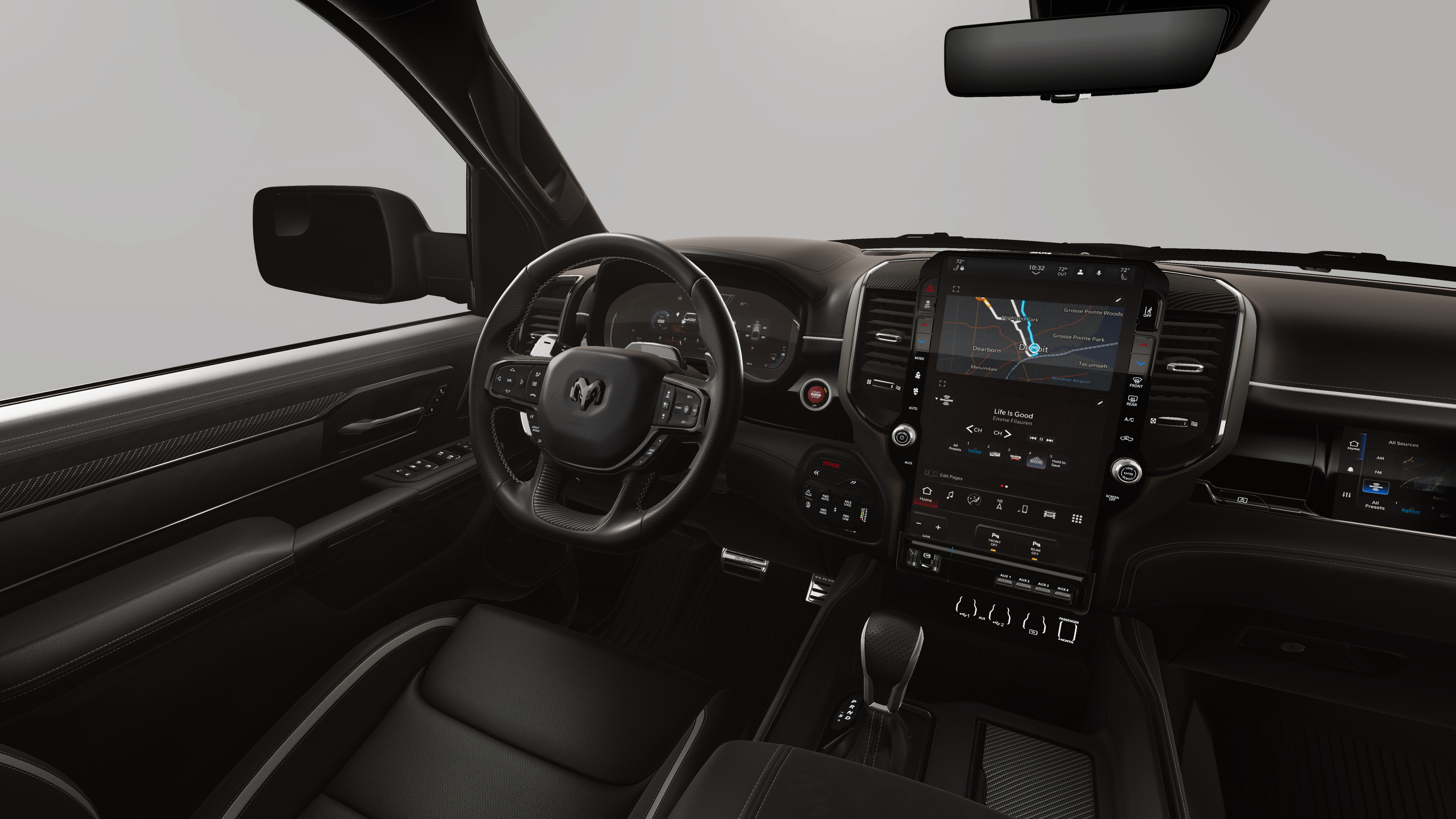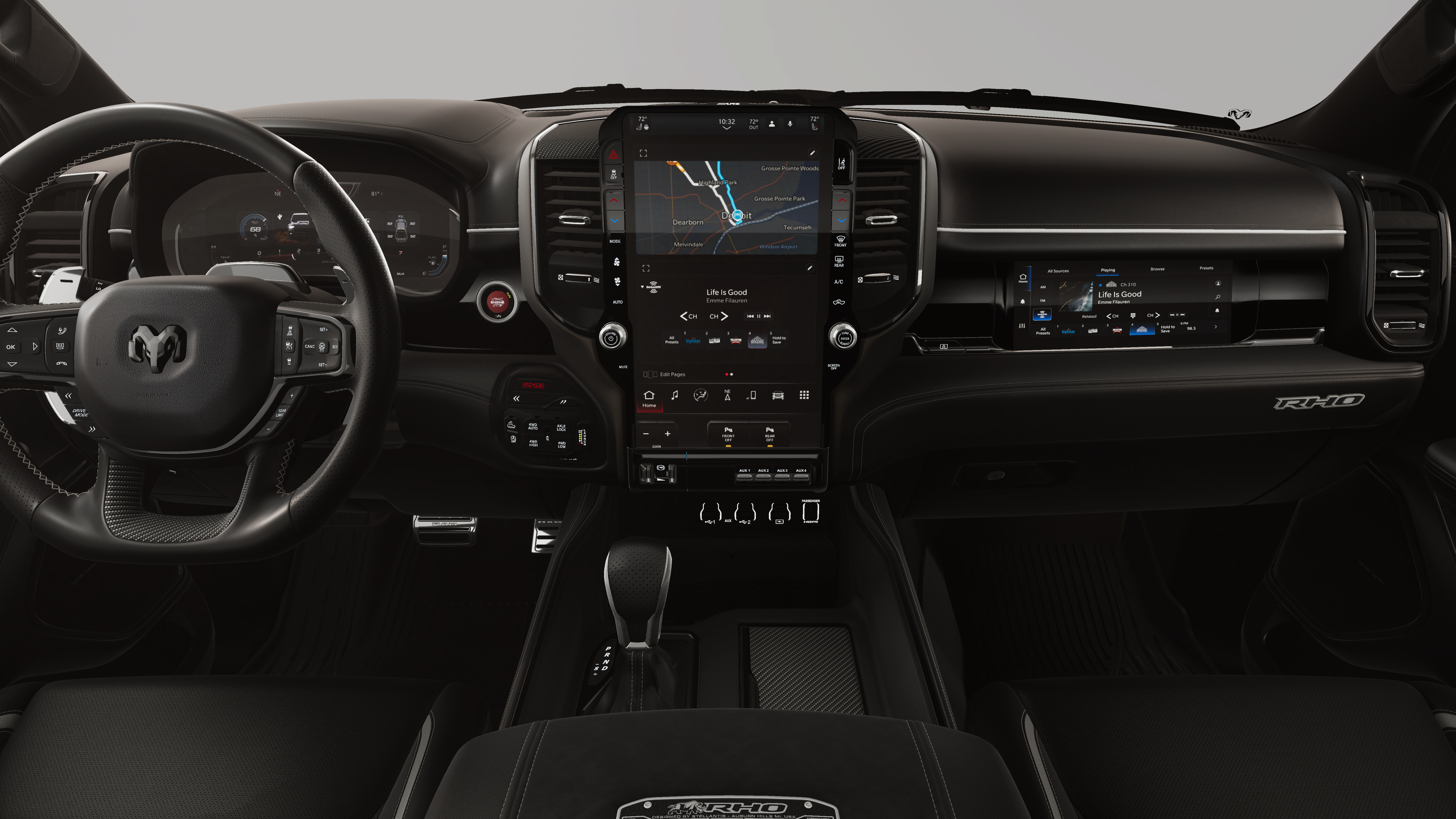 Forged Blue Metallic 2026 Ram 1500 RHO 4WD 8-Speed Automatic 3.0L I6 10 Speakers, 12-Way/1-Way Trailer Connector, 14.4 Touchscreen Display, 240 Amp Alternator, 3.92 Rear Axle Ratio, 4-Wheel Disc Brakes, 4G LTE Wi-Fi Hot Spot, ABS brakes, Adaptive suspension, Adjustable pedals, Air Conditioning, Alloy wheels, AM/FM radio, Apple CarPlay/Android Auto, Auto High-beam Headlights, Auto Power-Folding Mirrors, Auto-dimming door mirrors, Auto-Dimming Exterior Driver Mirror, Auto-dimming Rear-View mirror, Automatic temperature control, Brake assist, Compass, Connected Travel and Traffic Services, Connectivity - US/Canada, Delay-off headlights, Disassociated Touchscreen Display, Dome Dual LED Reading Lamp, Driver door bin, Driver Power Seat Back Massage, Driver Seat Memory, Driver vanity mirror, Driver/Passenger Wrapped Assist Handles, Drowsy Driver Detection, Dual front impact airbags, Dual front side impact airbags, Dual Wireless Charging Pad, Dual-Pane Panoramic Sunroof, Electronic Stability Control, Evasive Steer Assist, Exterior Mirrors Courtesy Lamps, Exterior Mirrors with Heating Element, Exterior Mirrors with Memory, Exterior Mirrors with Supplemental Signals, Exterior Parking Camera Rear, Flareside Box, Front anti-roll bar, Front Bucket Seats, Front Center Armrest w/Storage, Front dual zone A/C, Front fog lights, Front License Plate Bracket, Front Passenger Interactive Display, Front Passenger Power Seat Back Massage, Front reading lights, Front wheel independent suspension, Full Length Premium Upgraded Floor Console, Fully automatic headlights, Garage door transmitter, GPS Navigation, Hands-Free Active Driving Assist System, Harman/Kardon 19 Speaker Premium Sound, HD Radio, Heads-Up Display, Heated door mirrors, Heated front seats, Heated Second Row Seats, Heated steering wheel, Illuminated entry, Integrated Center Stack Radio, Integrated Voice Command with Bluetooth®, Intersection Collision Assist System, Leather Shift Knob, Leather steering wheel, Leather Trimmed Bucket Seats, Leather/Carbon Flat-Bottom Steering Wheel, LED CHMSL Lamp, Low tire pressure warning, Luxury Front Door Trim Panel, MOPAR RHO Exterior Graphics, MyFlexCare Service Plan, Navigation System, Occupant sensing airbag, Outside temperature display, Overhead airbag, Overhead console, Panic alarm, Passenger door bin, Passenger vanity mirror, Power Adjustable Pedals with Memory, Power door mirrors, Power driver seat, Power passenger seat, Power steering, Power Tailgate, Power windows, Premium Wrapped Instrument Panel Bezel, Quick Order Package 22Y RHO, Radio data system, Radio: Uconnect 5 Nav with 14.4 Display, Radio: Uconnect 5 Navigation with 12.0 Display, Radio/Driver Seat/Mirrors/Pedals Memory, Rain Sensitive Windshield Wipers, Real Carbon Fiber Interior Accents, Rear 60/40 Folding Split Recline Seat, Rear reading lights, Rear seat center armrest, Rear step bumper, Rear window defroster, Remote keyless entry, RHO Level 1 Equipment Group, Security system, SiriusXM Radio Service, Smartphone as a Key Capable, Speed control, Split folding rear seat, Sport steering wheel, Steering wheel mounted audio controls, Surround View Camera System, Tachometer, Telescoping steering wheel, Tilt steering wheel, Traction control, Traffic Sign Recognition, Tri-Fold Tonneau Cover, Trip computer, Turn signal indicator mirrors, USB Host Flip, Variably intermittent wipers, Ventilated Front Seats, Ventilated Rear Seats, Voltmeter, Wheels: 18 x 9 Black Paint/Polish Aluminum.