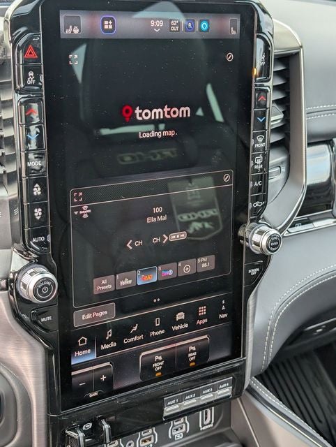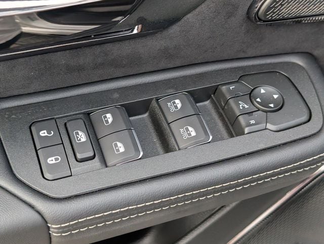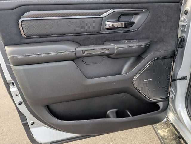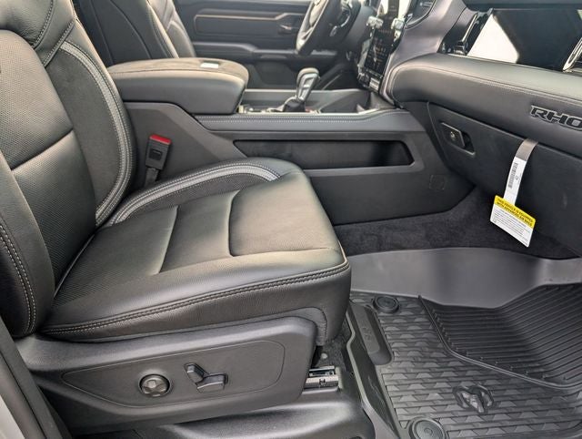 Well equipped with: Quick Order Package 22Y RHO, RHO Level 1 Equipment Group (12-Way/1-Way Trailer Connector, 14.4 Touchscreen Display, 240 Amp Alternator, 4G LTE Wi-Fi Hot Spot, Connected Travel and Traffic Services, Connectivity - US/Canada, Disassociated Touchscreen Display, Driver Power Seat Back Massage, Driver Seat Memory, Driver/Passenger Wrapped Assist Handles, Drowsy Driver Detection, Dual Wireless Charging Pad, Evasive Steer Assist, Exterior Mirrors with Memory, Front Passenger Interactive Display, Front Passenger Power Seat Back Massage, Full Length Premium Upgraded Floor Console, GPS Navigation, Hands-Free Active Driving Assist System, Harman/Kardon 19 Speaker Premium Sound, HD Radio, Heads-Up Display, Heated Second Row Seats, Integrated Center Stack Radio, Integrated Voice Command with Bluetooth®, Intersection Collision Assist System, Leather/Carbon Flat-Bottom Steering Wheel, LED CHMSL Lamp, Luxury Front Door Trim Panel, Power Adjustable Pedals with Memory, Power Tailgate, Premium Wrapped Instrument Panel Bezel, Radio: Uconnect 5 Nav with 14.4 Display, Radio/Driver Seat/Mirrors/Pedals Memory, Rain Sensitive Windshield Wipers, Real Carbon Fiber Interior Accents, Rear 60/40 Folding Split Recline Seat, SiriusXM Radio Service, Smartphone as a Key Capable, Surround View Camera System, Traffic Sign Recognition, USB Host Flip, Ventilated Front Seats, and Ventilated Rear Seats), 10 Speakers, 3.92 Rear Axle Ratio, 4-Wheel Disc Brakes, ABS brakes, Adaptive suspension, Adjustable pedals, Air Conditioning, Alloy wheels, AM/FM radio, Apple CarPlay/Android Auto, Auto High-beam Headlights, Auto Power-Folding Mirrors, Auto-dimming door mirrors, Auto-Dimming Exterior Driver Mirror, Auto-dimming Rear-View mirror, Automatic temperature control, Brake assist, Compass, Delay-off headlights, Dome Dual LED Reading Lamp, Driver door bin, Driver vanity mirror, Dual front impact airbags, Dual front side impact airbags, Dual-Pane Panoramic Sunroof, Electronic Stability Control, Exterior Mirrors Courtesy Lamps, Exterior Mirrors with Heating Element, Exterior Mirrors with Supplemental Signals, Exterior Parking Camera Rear, Flareside Box, Front anti-roll bar, Front Bucket Seats, Front Center Armrest w/Storage, Front dual zone A/C, Front fog lights, Front License Plate Bracket, Front reading lights, Front wheel independent suspension, Fully automatic headlights, Garage door transmitter, Heated door mirrors, Heated front seats, Heated steering wheel, Illuminated entry, Leather Shift Knob, Leather steering wheel, Leather Trimmed Bucket Seats, Low tire pressure warning, MOPAR RHO Exterior Graphics, MOPAR RHO Hood Graphics, MyFlexCare Service Plan, Navigation System, Occupant sensing airbag, Outside temperature display, Overhead airbag, Overhead console, Panic alarm, Passenger door bin, Passenger vanity mirror, Power door mirrors, Power driver seat, Power passenger seat, Power steering, Power windows, Radio data system, Radio: Uconnect 5 Navigation with 12.0 Display, Rear reading lights, Rear seat center armrest, Rear step bumper, Rear window defroster, Remote keyless entry, Security system, Speed control, Split folding rear seat, Sport steering wheel, Steering wheel mounted audio controls, Tachometer, Telescoping steering wheel, Tilt steering wheel, Traction control, Trip computer, Turn signal indicator mirrors, Variably intermittent wipers, Voltmeter, and Wheels: 18 x 9 Black Paint/Polish Aluminum.