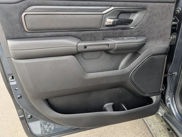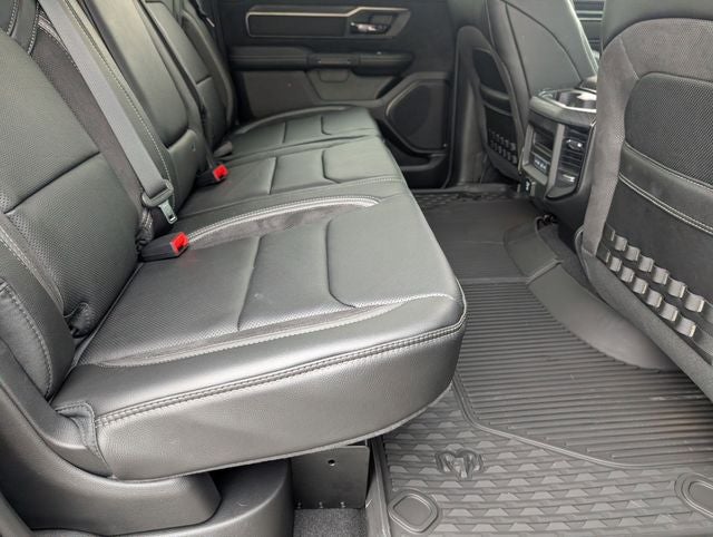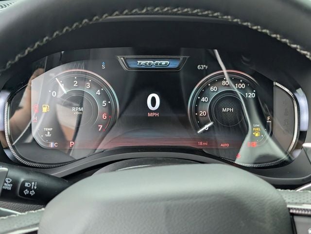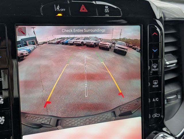 Well equipped with: Quick Order Package 22Y RHO, 10 Speakers, 3.92 Rear Axle Ratio, 4-Wheel Disc Brakes, 4G LTE Wi-Fi Hot Spot, ABS brakes, Adaptive suspension, Adjustable pedals, Air Conditioning, Alloy wheels, AM/FM radio, Apple CarPlay/Android Auto, Auto High-beam Headlights, Auto Power-Folding Mirrors, Auto-dimming door mirrors, Auto-Dimming Exterior Driver Mirror, Auto-dimming Rear-View mirror, Automatic temperature control, Brake assist, Compass, Connected Travel and Traffic Services, Connectivity - US/Canada, Delay-off headlights, Disassociated Touchscreen Display, Driver door bin, Driver vanity mirror, Dual front impact airbags, Dual front side impact airbags, Electronic Stability Control, Exterior Mirrors Courtesy Lamps, Exterior Mirrors with Heating Element, Exterior Mirrors with Supplemental Signals, Exterior Parking Camera Rear, Flareside Box, Front anti-roll bar, Front Bucket Seats, Front Center Armrest w/Storage, Front dual zone A/C, Front fog lights, Front License Plate Bracket, Front reading lights, Front wheel independent suspension, Fully automatic headlights, Garage door transmitter, GPS Navigation, HD Radio, Heated door mirrors, Heated front seats, Heated steering wheel, Illuminated entry, Integrated Center Stack Radio, Integrated Voice Command with Bluetooth®, Leather Shift Knob, Leather steering wheel, Leather Trimmed Bucket Seats, Low tire pressure warning, MyFlexCare Service Plan, Navigation System, Occupant sensing airbag, Outside temperature display, Overhead airbag, Overhead console, Panic alarm, Passenger door bin, Passenger vanity mirror, Power door mirrors, Power driver seat, Power passenger seat, Power steering, Power windows, Radio data system, Radio: Uconnect 5 Navigation with 12.0 Display, Rear reading lights, Rear seat center armrest, Rear step bumper, Rear window defroster, Remote keyless entry, Security system, SiriusXM Radio Service, Speed control, Split folding rear seat, Sport steering wheel, Steering wheel mounted audio controls, Tachometer, Telescoping steering wheel, Tilt steering wheel, Traction control, Trip computer, Turn signal indicator mirrors, USB Host Flip, Variably intermittent wipers, Voltmeter, and Wheels: 18 x 9 Black Paint/Polish Aluminum.