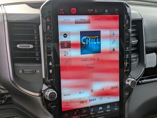 Forged Blue Metallic 2026 Ram 1500 Rebel 4WD 8-Speed Automatic 3.0L I6 10 Speakers, 115V Auxiliary Rear Power Outlet, 14.4 Touchscreen Display, 2-Door Passive Entry, Front Door Locks, 3.92 Rear Axle Ratio, 4 Way Front Headrests, 4-Wheel Disc Brakes, 4G LTE Wi-Fi Hot Spot, ABS brakes, Accent Color Door Handles, Accent Color Premium Power Mirrors, Accent Color Tailgate Handle, Active Noise Control System, Air Conditioning, Alloy wheels, AM/FM radio: SiriusXM with 360L, Apple CarPlay, Apple CarPlay/Android Auto, Auto High-beam Headlights, Auto Power-Folding Mirrors, Auto-Dimming Exterior Driver Mirror, Auto-dimming Rear-View mirror, Automatic temperature control, Black Exterior Mirrors, Black Painted Exterior Mirrors Caps, Brake assist, Bucket Seats, Cloth/Vinyl Bucket Seats, Compass, Connected Travel and Traffic Services, Connectivity - US/Canada, Convex Wide-Angle Exterior Mirror Insert, Delay-off headlights, Disassociated Touchscreen Display, Dome Dual LED Reading Lamp, Driver door bin, Driver Seat Memory, Driver vanity mirror, Dual front impact airbags, Dual front side impact airbags, Dual Wireless Charging Pad, Dual-Pane Panoramic Sunroof, Electronic Stability Control, Exterior Mirrors Approach Lamps, Exterior Mirrors Courtesy Lamps, Exterior Mirrors with Heating Element, Exterior Mirrors with Memory, Exterior Mirrors with Supplemental Signals, Front anti-roll bar, Front Bucket Seats, Front Center Armrest w/Storage, Front dual zone A/C, Front fog lights, Front License Plate Bracket, Front Passenger Interactive Display, Front reading lights, Front Seat Back Map Pockets, Front wheel independent suspension, Full Length Upgraded Floor Console, Fully automatic headlights, Garage door transmitter, Global Telematics Box Module, Google Android Auto, GPS Antenna Input, GPS Navigation, Harman/Kardon 19 Speaker Premium Sound, HD Radio, Heated door mirrors, Heated Front Seats, Heated front seats, Heated Second Row Seats, Heated Steering Wheel, Heated steering wheel, Illuminated entry, Integrated Center Stack Radio, Integrated Voice Command with Bluetooth®, Leather steering wheel, Low tire pressure warning, Manual Folding Exterior Mirrors, Media Hub with 2 Charge Only USBs, MyFlexCare Service Plan, Navigation System, Occupant sensing airbag, Off-Road Information Pages, Outside temperature display, Overhead airbag, Overhead console, Panic alarm, ParkView Rear Back-Up Camera, Passenger door bin, Passenger vanity mirror, Power 2-Way Driver Lumbar Adjust, Power 2-Way Passenger Lumbar Adjust, Power Adjust 8-Way Driver Seat, Power Adjust 8-Way Front Passenger Seat, Power Adjustable Pedals with Memory, Power door mirrors, Power driver seat, Power steering, Power Tailgate, Power windows, Proximity Approach/Departure Lamps, Quick Order Package 21W Rebel, Radio data system, Radio: Uconnect 5 Nav with 14.4 Display, Radio: Uconnect 5 Navigation with 12.0 Display, Radio/Driver Seat/Mirrors/Pedals Memory, Rain Sensitive Windshield Wipers, Rear 60/40 Folding Seat, Rear anti-roll bar, Rear seat center armrest, Rear step bumper, Rear Window Defroster, Rebel Level 2 Equipment Group, Remote keyless entry, Security Alarm, SiriusXM Radio Service, SiriusXM with 360L, Smartphone as a Key Capable, Speed control, Split folding rear seat, Steering wheel mounted audio controls, Tachometer, Telescoping steering wheel, Tilt steering wheel, Traction control, Trip computer, USB Host Flip, Variably intermittent wipers, Voltmeter, Wheels: 18 x 8.0 Painted Mid-Gloss Black.