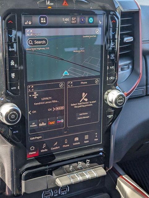 Well equipped with: Bed Utility Group (Exterior 115V AC Outlet, MOPAR 4 Adjustable Cargo Tie-Down Hooks, and MOPAR Spray in Bedliner), Quick Order Package 21W Rebel, Rebel Level 1 Equipment Group (Auto Power-Folding Mirrors, Auto-Dimming Exterior Driver Mirror, Black Exterior Mirrors, Black Premium Power Mirrors, Convex Wide-Angle Exterior Mirror Insert, Exterior Mirrors Courtesy Lamps, Exterior Mirrors with Heating Element, Exterior Mirrors with Supplemental Signals, Power Adjustable Pedals, Rear Window Defroster, Remote Tailgate Release, and Wireless Charging Pad), 10 Speakers, 3.92 Rear Axle Ratio, 4 Way Front Headrests, 4-Wheel Disc Brakes, 4G LTE Wi-Fi Hot Spot, ABS brakes, Active Noise Control System, Air Conditioning, Alloy wheels, AM/FM radio: SiriusXM with 360L, Apple CarPlay, Apple CarPlay/Android Auto, Auto High-beam Headlights, Auto-dimming Rear-View mirror, Automatic temperature control, Brake assist, Bucket Seats, Cloth/Vinyl Bucket Seats, Compass, Connected Travel and Traffic Services, Connectivity - US/Canada, Delay-off headlights, Disassociated Touchscreen Display, Driver door bin, Driver vanity mirror, Dual front impact airbags, Dual front side impact airbags, Electronic Stability Control, Front anti-roll bar, Front Bucket Seats, Front Center Armrest w/Storage, Front dual zone A/C, Front fog lights, Front License Plate Bracket, Front reading lights, Front Seat Back Map Pockets, Front wheel independent suspension, Full Length Upgraded Floor Console, Fully automatic headlights, Garage door transmitter, Global Telematics Box Module, Google Android Auto, GPS Antenna Input, GPS Navigation, HD Radio, Heated door mirrors, Heated Front Seats, Heated front seats, Heated Steering Wheel, Heated steering wheel, Illuminated entry, Integrated Center Stack Radio, Integrated Voice Command with Bluetooth®, Leather steering wheel, Low tire pressure warning, Manual Folding Exterior Mirrors, MyFlexCare Service Plan, Navigation System, Occupant sensing airbag, Off-Road Information Pages, Outside temperature display, Overhead airbag, Overhead console, Panic alarm, ParkView Rear Back-Up Camera, Passenger door bin, Passenger vanity mirror, Power 2-Way Driver Lumbar Adjust, Power Adjust 8-Way Driver Seat, Power door mirrors, Power driver seat, Power steering, Power windows, Radio data system, Radio: Uconnect 5 Navigation with 12.0 Display, Rear 60/40 Folding Seat, Rear anti-roll bar, Rear seat center armrest, Rear step bumper, Remote keyless entry, SiriusXM Radio Service, SiriusXM with 360L, Speed control, Split folding rear seat, Steering wheel mounted audio controls, Tachometer, Telescoping steering wheel, Tilt steering wheel, Traction control, Trip computer, USB Host Flip, Variably intermittent wipers, Voltmeter, and Wheels: 18 x 8.0 Painted Mid-Gloss Black. Price includes: $3500 - 2026 National Retail Bonus Cash . Exp. 04/30/2026