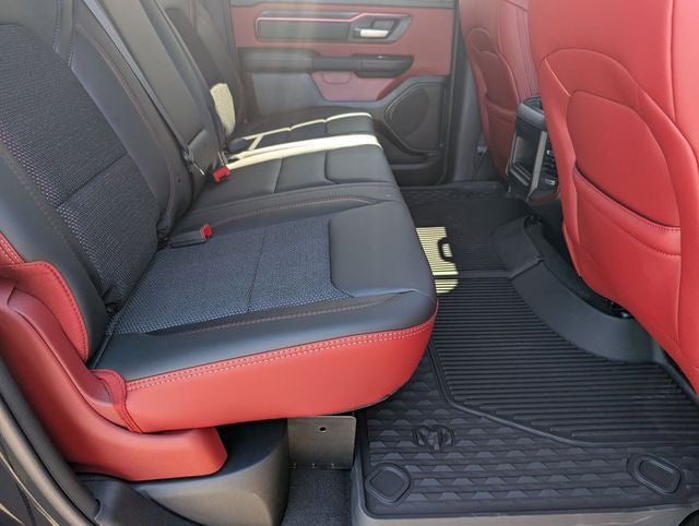 Well equipped with: Bed Utility Group (Exterior 115V AC Outlet, MOPAR 4 Adjustable Cargo Tie-Down Hooks, and MOPAR Spray in Bedliner), Quick Order Package 21W Rebel, Rebel Level 1 Equipment Group (Auto Power-Folding Mirrors, Auto-Dimming Exterior Driver Mirror, Black Exterior Mirrors, Black Premium Power Mirrors, Convex Wide-Angle Exterior Mirror Insert, Exterior Mirrors Courtesy Lamps, Exterior Mirrors with Heating Element, Exterior Mirrors with Supplemental Signals, Power Adjustable Pedals, Rear Window Defroster, Remote Tailgate Release, and Wireless Charging Pad), 10 Speakers, 3.92 Rear Axle Ratio, 4 Way Front Headrests, 4-Wheel Disc Brakes, 4G LTE Wi-Fi Hot Spot, ABS brakes, Active Noise Control System, Air Conditioning, Alloy wheels, AM/FM radio: SiriusXM with 360L, Apple CarPlay, Apple CarPlay/Android Auto, Auto High-beam Headlights, Auto-dimming Rear-View mirror, Automatic temperature control, Brake assist, Bucket Seats, Cloth/Vinyl Bucket Seats, Compass, Connected Travel and Traffic Services, Connectivity - US/Canada, Delay-off headlights, Disassociated Touchscreen Display, Driver door bin, Driver vanity mirror, Dual front impact airbags, Dual front side impact airbags, Electronic Stability Control, Front anti-roll bar, Front Bucket Seats, Front Center Armrest w/Storage, Front dual zone A/C, Front fog lights, Front License Plate Bracket, Front reading lights, Front Seat Back Map Pockets, Front wheel independent suspension, Full Length Upgraded Floor Console, Fully automatic headlights, Garage door transmitter, Global Telematics Box Module, Google Android Auto, GPS Antenna Input, GPS Navigation, HD Radio, Heated door mirrors, Heated Front Seats, Heated front seats, Heated Steering Wheel, Heated steering wheel, Illuminated entry, Integrated Center Stack Radio, Integrated Voice Command with Bluetooth®, Leather steering wheel, Low tire pressure warning, Manual Folding Exterior Mirrors, MyFlexCare Service Plan, Navigation System, Occupant sensing airbag, Off-Road Information Pages, Outside temperature display, Overhead airbag, Overhead console, Panic alarm, ParkView Rear Back-Up Camera, Passenger door bin, Passenger vanity mirror, Power 2-Way Driver Lumbar Adjust, Power Adjust 8-Way Driver Seat, Power door mirrors, Power driver seat, Power steering, Power windows, Radio data system, Radio: Uconnect 5 Navigation with 12.0 Display, Rear 60/40 Folding Seat, Rear anti-roll bar, Rear seat center armrest, Rear step bumper, Remote keyless entry, SiriusXM Radio Service, SiriusXM with 360L, Speed control, Split folding rear seat, Steering wheel mounted audio controls, Tachometer, Telescoping steering wheel, Tilt steering wheel, Traction control, Trip computer, USB Host Flip, Variably intermittent wipers, Voltmeter, and Wheels: 18 x 8.0 Painted Mid-Gloss Black. Price includes: $3500 - 2026 National Retail Bonus Cash . Exp. 04/30/2026