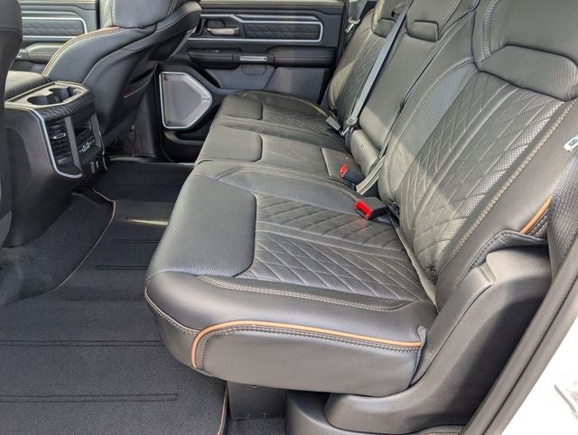 Well equipped with: Bed Utility Group (Exterior 115V AC Outlet, MOPAR 4 Adjustable Cargo Tie-Down Hooks, and Truck Bed Cargo Divider), Quick Order Package 22V Tungsten, 12-Way/1-Way Trailer Connector, 3.92 Rear Axle Ratio, 4-Wheel Disc Brakes, ABS brakes, Adjustable pedals, Air Conditioning, Alloy wheels, AM/FM radio, Apple CarPlay/Android Auto, Audio memory, Auto High-beam Headlights, Auto Power-Folding Mirrors, Auto-dimming door mirrors, Auto-Dimming Exterior Driver Mirror, Auto-dimming Rear-View mirror, Auto-leveling suspension, Automatic temperature control, Bodyside moldings, Brake assist, Bumpers: body-color, Chrome Exterior Mirrors, Compass, Delay-off headlights, Driver door bin, Driver vanity mirror, Dual front impact airbags, Dual front side impact airbags, Electronic Stability Control, Exterior Mirrors Courtesy Lamps, Exterior Mirrors with Heating Element, Exterior Mirrors with Memory, Exterior Mirrors with Supplemental Signals, Exterior Parking Camera Rear, Front anti-roll bar, Front Bucket Seats, Front Center Armrest w/Storage, Front dual zone A/C, Front fog lights, Front License Plate Bracket, Front reading lights, Front wheel independent suspension, Fully automatic headlights, Garage door transmitter, Heads-Up Display, Heated door mirrors, Heated front seats, Heated rear seats, Heated steering wheel, Illuminated entry, Leather steering wheel, Low tire pressure warning, Memory seat, Multi-Function Tailgate, MyFlexCare Service Plan, Navigation System, Occupant sensing airbag, Outside temperature display, Overhead airbag, Overhead console, Panic alarm, Passenger door bin, Passenger vanity mirror, Pedal memory, Power adjustable front head restraints, Power door mirrors, Power driver seat, Power moonroof, Power passenger seat, Power steering, Power windows, Premium Leather Bucket Seats, Radio data system, Radio: Uconnect 5 Nav with 14.4 Display, Rain sensing wipers, RAM's Head Badge, Rear anti-roll bar, Rear reading lights, Rear seat center armrest, Rear step bumper, Rear window defroster, Remote keyless entry, Remote Tailgate Release, Security system, Speed control, Split folding rear seat, Steering wheel mounted audio controls, Tachometer, Telescoping steering wheel, Tilt steering wheel, Traction control, Trailer Brake Control, Trip computer, Turn signal indicator mirrors, Variably intermittent wipers, Ventilated front seats, Ventilated rear seats, Voltmeter, and Wheels: 22 x 9 Polish/Painted with Inserts. Price includes: $1000 - 2026 National Bonus Cash . Exp. 03/31/2026