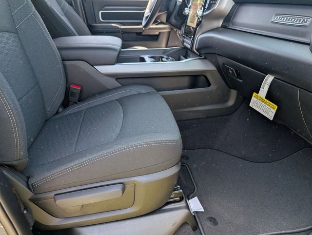 Well equipped with: Big Horn Level 1 Plus Equipment Group (12 Touchscreen Display, 2 Way Rear Headrest Seat, 2nd Row in Floor Storage Bins, 4 Way Front Headrests, 40/20/40 Split Bench Seat, 4G LTE Wi-Fi Hot Spot, 9 Alpine Speakers with Subwoofer, Air Conditioning ATC with Dual Zone Control, Alexa Built-in, Anti-Spin Differential Rear Axle, Apple CarPlay, Auto Power-Folding Mirrors, Auto-Dimming Rear-View Mirror, Black Exterior Mirrors, Connected Travel and Traffic Services, Connectivity - US/Canada, Disassociated Touchscreen Display, Dual Glove Boxes, Emergency Vehicle Alert System (EVAS), Exterior Mirrors Courtesy Lamps, Exterior Mirrors with Heating Element, Exterior Mirrors with Supplemental Signals, Foam Bottle Insert (door Trim Panel), Folding Flat Load Floor Storage, Footwell Courtesy Lamp, For Details, Visit DriveUconnect.com, For More Info, Call 800-643-2112, Forward and Reverse Utility Lights, Front Armrest with Cupholders, Front Center Seat Cushion Storage, Front Seat Back Map Pockets, Global Telematics Box Module, Glove Box Lamp, Google Android Auto, GPS Antenna Input, GPS Navigation, HD Radio, Integrated Voice Command with Bluetooth®, LED Bed Lighting, Locking Lower Glove Box, Luxury Steering Wheel, Manual Adjust 4-Way Front Passenger Seat, Mirror Running Lights, MOPAR Deployable Bed Step, MOPAR Spray in Bedliner, Off-Road Info Pages, Power 2-Way Driver Lumbar Adjust, Power Adjust 8-Way Driver Seat, Power Adjust Mirrors, Power Heated Folding Telescopic Mirrors, Power Telescoping Mirrors, Power-Adjustable Convex Aux Mirrors, Premium Cloth 40/20/40 Bench Seat, Radio: Uconnect 5 Navigation with 12.0 Display, Rear 60/40 Folding Seat, Rear Dome with on/Off Switch Lamp, Remote Start System, Remote USB Port - Charge Only, Selectable Tire Fill Alert, SiriusXM Radio Service, SiriusXM with 360L, Steering Wheel Mounted Audio Controls, Storage Tray, and Trailer Tow Pages), Night Edition (Black Exterior Truck Badging, Black Interior Accents, Black Wheel Center Hub, Body Color Grille-Surround, Gloss Black Nostrils/Mic Black Grille, Painted Front Bumper, Painted Rear Bumper, and Wheels: 20 x 8.0 Black Painted Aluminum), Quick Order Package 24Z Big Horn, 4-Wheel Disc Brakes, 5th Wheel/Gooseneck Towing Prep Group, 6 Speakers, ABS brakes, Air Conditioning, Alloy wheels, AM/FM radio: SiriusXM, Apple CarPlay/Android Auto, Brake assist, Bumpers: chrome, Center Hub, Clearance Lamps, Cloth 40/20/40 Bench Seat, Compass, Dash Pass Thru Wire Circuits, Delay-off headlights, Driver door bin, Dual front impact airbags, Dual front side impact airbags, Electronic Stability Control, Front anti-roll bar, Front Center Armrest w/Storage, Front fog lights, Front License Plate Bracket, Front reading lights, Fully automatic headlights, Heated door mirrors, Illuminated entry, Instrument Panel Mounted Auxiliary Switches, Low tire pressure warning, Manual Adjust 4-Way Driver Seat, MyFlexCare Service Diesel, Occupant sensing airbag, Outside temperature display, Overhead airbag, Overhead console, Panic alarm, ParkView Rear Back-Up Camera, Passenger door bin, Passenger vanity mirror, Power door mirrors, Power steering, Power windows, Radio data system, Radio: Uconnect 5 with 8.4 Display, Rear anti-roll bar, Rear Folding Seat, Rear seat center armrest, Rear step bumper, Rear window defroster, Remote keyless entry, Security system, Speed control, Tachometer, Tilt steering wheel, Traction control, Trip computer, Turn signal indicator mirrors, Variably intermittent wipers, Voltmeter, and Wheels: 18 x 8.0 Polished AluminuM. Price includes: $1000 - 2026 National Bonus Cash . Exp. 04/30/2026