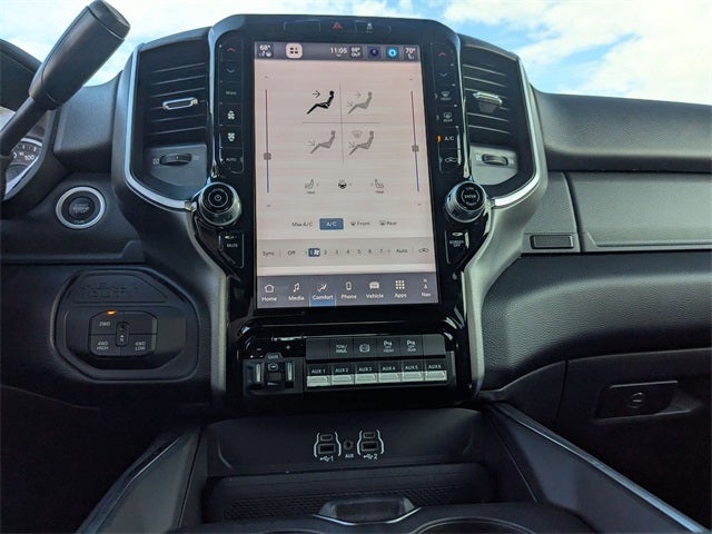 Well equipped with: Big Horn Level 1 Plus Equipment Group (12 Touchscreen Display, 2 Way Rear Headrest Seat, 4 Way Front Headrests, 40/20/40 Split Bench Seat, 4G LTE Wi-Fi Hot Spot, Anti-Spin Differential Rear Axle, Apple CarPlay, Auto Power-Folding Mirrors, Auto-Dimming Rear-View Mirror, Black Exterior Mirrors, Connectivity - US/Canada, Disassociated Touchscreen Display, Dual Glove Boxes, Emergency Vehicle Alert System (EVAS), Exterior Mirrors Courtesy Lamps, Folding Flat Load Floor Storage, Footwell Courtesy Lamp, For Details, Visit DriveUconnect.com, For More Info, Call 800-643-2112, Front Center Seat Cushion Storage, Front Seat Back Map Pockets, Glove Box Lamp, Google Android Auto, GPS Antenna Input, GPS Navigation, HD Radio, LED Bed Lighting, Locking Lower Glove Box, Luxury Steering Wheel, Manual Adjust 4-Way Front Passenger Seat, Mirror Running Lights, MOPAR Deployable Bed Step, Off-Road Info Pages, Power 2-Way Driver Lumbar Adjust, Power Adjust 8-Way Driver Seat, Power Adjust Mirrors, Power Heated Folding Telescopic Mirrors, Power Telescoping Mirrors, Power-Adjustable Convex Aux Mirrors, Premium Cloth 40/20/40 Bench Seat, Rear 60/40 Folding Seat, Remote Start System, Remote USB Port - Charge Only, Selectable Tire Fill Alert, SiriusXM Radio Service, Steering Wheel Mounted Audio Controls, Storage Tray, and Trailer Tow Pages), Night Edition (Black Exterior Truck Badging, Black Interior Accents, Black Wheel Center Hub, Body Color Grille-Surround, Gloss Black Nostrils/Mic Black Grille, Painted Front Bumper, Painted Rear Bumper, and Wheels: 20 x 8.0 Black Painted Aluminum), Quick Order Package 24Z Big Horn, 4-Wheel Disc Brakes, 5th Wheel/Gooseneck Towing Prep Group, 6 Speakers, ABS brakes, Air Conditioning, Alloy wheels, AM/FM radio: SiriusXM, Apple CarPlay/Android Auto, Brake assist, Bumpers: chrome, Center Hub, Cloth 40/20/40 Bench Seat, Compass, Dash Pass Thru Wire Circuits, Delay-off headlights, Driver door bin, Dual front impact airbags, Dual front side impact airbags, Electronic Stability Control, Front anti-roll bar, Front Center Armrest w/Storage, Front fog lights, Front License Plate Bracket, Front reading lights, Fully automatic headlights, Heated door mirrors, Heated Front Seats, Heated Steering Wheel, Illuminated entry, Low tire pressure warning, Manual Adjust 4-Way Driver Seat, MyFlexCare Service Diesel, Occupant sensing airbag, Outside temperature display, Overhead airbag, Overhead console, Panic alarm, ParkView Rear Back-Up Camera, Passenger door bin, Passenger vanity mirror, Power door mirrors, Power steering, Power windows, Radio data system, Rear anti-roll bar, Rear Folding Seat, Rear seat center armrest, Rear step bumper, Rear window defroster, Remote keyless entry, Security system, Speed control, Tachometer, Tilt steering wheel, Traction control, Trip computer, Turn signal indicator mirrors, Variably intermittent wipers, Voltmeter, and Wheels: 18 x 8.0 Polished AluminuM. Price includes: $1000 - 2026 National Bonus Cash . Exp. 02/02/2026