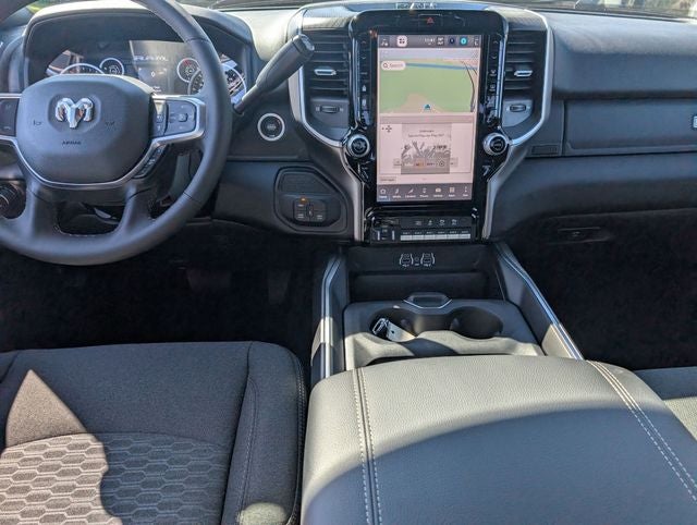 Well equipped with: Big Horn Level 1 Plus Equipment Group (12 Touchscreen Display, 2 Way Rear Headrest Seat, 2nd Row in Floor Storage Bins, 4 Way Front Headrests, 40/20/40 Split Bench Seat, 4G LTE Wi-Fi Hot Spot, 9 Alpine Speakers with Subwoofer, Air Conditioning ATC with Dual Zone Control, Alexa Built-in, Anti-Spin Differential Rear Axle, Apple CarPlay, Auto Power-Folding Mirrors, Auto-Dimming Rear-View Mirror, Black Exterior Mirrors, Connected Travel and Traffic Services, Connectivity - US/Canada, Disassociated Touchscreen Display, Dual Glove Boxes, Emergency Vehicle Alert System (EVAS), Exterior Mirrors Courtesy Lamps, Exterior Mirrors with Heating Element, Exterior Mirrors with Supplemental Signals, Foam Bottle Insert (door Trim Panel), Folding Flat Load Floor Storage, Footwell Courtesy Lamp, For Details, Visit DriveUconnect.com, For More Info, Call 800-643-2112, Forward and Reverse Utility Lights, Front Armrest with Cupholders, Front Center Seat Cushion Storage, Front Seat Back Map Pockets, Global Telematics Box Module, Glove Box Lamp, Google Android Auto, GPS Antenna Input, GPS Navigation, HD Radio, Integrated Voice Command with Bluetooth®, LED Bed Lighting, Locking Lower Glove Box, Luxury Steering Wheel, Manual Adjust 4-Way Front Passenger Seat, Mirror Running Lights, MOPAR Deployable Bed Step, MOPAR Spray in Bedliner, Off-Road Info Pages, Power 2-Way Driver Lumbar Adjust, Power Adjust 8-Way Driver Seat, Power Adjust Mirrors, Power Heated Folding Telescopic Mirrors, Power Telescoping Mirrors, Power-Adjustable Convex Aux Mirrors, Premium Cloth 40/20/40 Bench Seat, Radio: Uconnect 5 Navigation with 12.0 Display, Rear 60/40 Folding Seat, Rear Dome with on/Off Switch Lamp, Remote Start System, Remote USB Port - Charge Only, Selectable Tire Fill Alert, SiriusXM Radio Service, SiriusXM with 360L, Steering Wheel Mounted Audio Controls, Storage Tray, and Trailer Tow Pages), Heated Seats and Wheel Group (Heated Front Seats and Heated Steering Wheel), Night Edition (Black Exterior Truck Badging, Black Interior Accents, Black Wheel Center Hub, Body Color Grille-Surround, Gloss Black Nostrils/Mic Black Grille, Painted Front Bumper, Painted Rear Bumper, and Wheels: 20 x 8.0 Black Painted Aluminum), Quick Order Package 2UZ Big Horn, 3.73 Axle Ratio, 4-Wheel Disc Brakes, 6 Speakers, ABS brakes, Air Conditioning, Alloy wheels, AM/FM radio: SiriusXM, Apple CarPlay/Android Auto, Brake assist, Bumpers: chrome, Center Hub, Cloth 40/20/40 Bench Seat, Compass, Dash Pass Thru Wire Circuits, Delay-off headlights, Driver door bin, Dual front impact airbags, Dual front side impact airbags, Electronic Stability Control, Front anti-roll bar, Front Center Armrest w/Storage, Front fog lights, Front License Plate Bracket, Front reading lights, Fully automatic headlights, Heated door mirrors, Illuminated entry, Instrument Panel Mounted Auxiliary Switches, Low tire pressure warning, Manual Adjust 4-Way Driver Seat, MyFlexCare Service Plan, Occupant sensing airbag, Outside temperature display, Overhead airbag, Overhead console, Panic alarm, ParkView Rear Back-Up Camera, Passenger door bin, Passenger vanity mirror, Power door mirrors, Power steering, Power windows, Radio data system, Radio: Uconnect 5 with 8.4 Display, Rear anti-roll bar, Rear Folding Seat, Rear seat center armrest, Rear step bumper, Rear window defroster, Remote keyless entry, Security system, Speed control, Tachometer, Tilt steering wheel, Traction control, Trip computer, Turn signal indicator mirrors, Variably intermittent wipers, Voltmeter, and Wheels: 18 x 8.0 Price includes: $1000 - 2026 National Bonus Cash . Exp