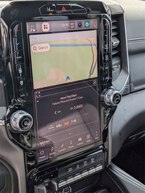 Well equipped with: Laramie Level 1 Plus Equipment Group (#1 Seat Foam Cushion, 115V Auxiliary Rear Power Outlet, 2 Way Rear Headrest Seat, 2nd Row in Floor Storage Bins, 4 Way Front Headrests, Active Lane Management System, Adaptive Steering System, Anti-Spin Differential Rear Axle, Auto Adjust in Reverse Exterior Mirrors, Auto Dim Exterior Mirror, Auto High Beam Headlamp Control, Auto Power-Folding Mirrors, Auto-Dimming Exterior Passenger Mirror, Bucket Seats, Center Stop Lamp with Cargo View Camera, Chrome Exterior Mirrors, Drowsy Driver Detection, Dual Wireless Charging Pad, Exterior Mirrors Courtesy Lamps, Exterior Mirrors with Heating Element, Exterior Mirrors with Memory, Exterior Mirrors with Supplemental Signals, Foam Bottle Insert (door Trim Panel), Folding Flat Load Floor Storage, Forward and Reverse Utility Lights, Front Seat Back Map Pockets, Full Length Upgraded Floor Console, Heated Front Seats, Heated Steering Wheel, High Back Seats, Leather Trimmed Bucket Seats, LED Bed Lighting, Mirror Running Lights, MOPAR Deployable Bed Step, MOPAR Spray in Bedliner, Power 2-Way Driver Lumbar Adjust, Power 2-Way Passenger Lumbar Adjust, Power Adjust 8-Way Driver Seat, Power Adjust 8-Way Front Passenger Seat, Power Adjust Mirrors, Power Adjustable Pedals with Memory, Power Heated Fold Telescopic Mirrors with Memory, Power Telescoping Mirrors, Power-Adjustable Convex Aux Mirrors, Radio/Driver Seat/Mirrors/Pedals Memory, Rain Sensitive Windshield Wipers, Rear 60/40 Folding Seat, Remote Tailgate Release, Traffic Sign Recognition, and Ventilated Front Seats), Night Edition (Black Exterior Mirrors, Black Exterior Truck Badging, Black Wheel Center Hub, Body Color Grille-Surround, Gloss Black Grille Billets/Accents, Sport Performance Hood, and Wheels: 20 x 8.0 Black Painted Aluminum), Quick Order Package 2UH Laramie, 10 Speakers, 3.73 Axle Ratio, 4-Wheel Disc Brakes, 4G LTE Wi-Fi Hot Spot, ABS brakes, Air Conditioning, Alexa Built-in, Alloy wheels, AM/FM radio: SiriusXM with 360L, Apple CarPlay, Apple CarPlay/Android Auto, Auto-dimming Rear-View mirror, Automatic temperature control, Brake assist, Bumpers: body-color, Clearance Lamps, Compass, Connected Travel and Traffic Services, Connectivity - US/Canada, Dash Pass Thru Wire Circuits, Delay-off headlights, Disassociated Touchscreen Display, Driver door bin, Driver vanity mirror, Dual front impact airbags, Dual front side impact airbags, Electronic Stability Control, Emergency Vehicle Alert System (EVAS), For Details, Visit DriveUconnect.com, For More Info, Call 800-643-2112, Front anti-roll bar, Front Center Armrest w/Storage, Front dual zone A/C, Front fog lights, Front reading lights, Fully automatic headlights, Garage door transmitter, Global Telematics Box Module, Google Android Auto, GPS Antenna Input, GPS Navigation, HD Radio, Heated door mirrors, Heated front seats, Heated steering wheel, Illuminated entry, Instrument Panel Mounted Auxiliary Switches, Integrated Voice Command with Bluetooth®, Leather Trim 40/20/40 Bench Seat, Low tire pressure warning, MyFlexCare Service Plan, Navigation System, Occupant sensing airbag, Off-Road Info Pages, Outside temperature display, Overhead airbag, Overhead console, Panic alarm, ParkView Rear Back-Up Camera, Passenger door bin, Passenger vanity mirror, Power door mirrors, Power driver seat, Power passenger seat, Power steering, Power windows, Radio data system, Radio: Uconnect 5 Navigation with 12.0 Display, Rear anti-roll bar, Rear reading lights, Rear seat center armrest, Rear step bumper, Rear window defroster, Rem Price includes: $1000 - 2026 National Bonus Cash . Exp