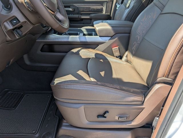 Well equipped with: Longhorn Level 1 Equipment Group (Active Lane Management System, Adaptive Steering System, Anti-Spin Differential Rear Axle, Center Stop Lamp with Cargo View Camera, Digital Rearview Mirror, Drowsy Driver Detection, LED Bed Lighting, MOPAR Spray in Bedliner, Power Deployable Running Boards, Surround View Camera System, Traffic Sign Recognition, Trailer Reverse Guidance, and Trailer Tire Pressure Monitoring System), Quick Order Package 24K Longhorn (Front Seat Back Map Pockets, I/P Aluminum Litho Bezels with Real Wood #1, Longhorn Badge, Longhorn Instrument Cluster Theme 3, Luxury Front and Rear Floor Mats, Premium Door Trim Panel, Premium Filigree Leather Seats, Ventilated Front Seats, and Warm Chrome Key Fob), Tow-Mode Digital Rearview Mirror Package (Tow-Mode Camera (Wired)), 17 Speakers, 4-Wheel Disc Brakes, 5th Wheel/Gooseneck Towing Prep Group, ABS brakes, Adjustable pedals, Air Conditioning, Alloy wheels, AM/FM radio: SiriusXM with 360L, Apple CarPlay/Android Auto, Audio memory, Auto High-beam Headlights, Auto Level Rear Air Suspension, Auto-dimming door mirrors, Auto-dimming Rear-View mirror, Automatic temperature control, Black Wheel Center Hub, Bodyside moldings, Brake assist, Bumpers: body-color, Clearance Lamps, Compass, Dash Pass Thru Wire Circuits, Delay-off headlights, Driver door bin, Driver vanity mirror, Dual front impact airbags, Dual front side impact airbags, Electronic Stability Control, Front anti-roll bar, Front Bucket Seats, Front Center Armrest w/Storage, Front dual zone A/C, Front fog lights, Front License Plate Bracket, Front reading lights, Fully automatic headlights, Garage door transmitter, Genuine wood console insert, Genuine wood dashboard insert, Genuine wood door panel insert, harman/kardon® Speakers, Heated door mirrors, Heated front seats, Heated rear seats, Heated steering wheel, Illuminated entry, Instrument Panel Mounted Auxiliary Switches, Leather steering wheel, Low tire pressure warning, Memory seat, MyFlexCare Service Diesel, Navigation System, Occupant sensing airbag, Outside temperature display, Overhead airbag, Overhead console, Panic alarm, ParkView Rear Back-Up Camera, Passenger door bin, Passenger vanity mirror, Pedal memory, Pickup Box, Power door mirrors, Power driver seat, Power passenger seat, Power steering, Power Sunroof, Power windows, Radio data system, Radio: Uconnect 5 Nav with 14.4 Display, Rain sensing wipers, Rear anti-roll bar, Rear reading lights, Rear seat center armrest, Rear step bumper, Rear window defroster, Remote keyless entry, Security system, Speed control, Split folding rear seat, Steering wheel mounted audio controls, Tachometer, Tilt steering wheel, Traction control, Trip computer, Turn signal indicator mirrors, Ultra Premium Leather Seats, Variably intermittent wipers, Vendor Painted Cargo Box, Vendor Painted Cargo Box Tracking, Ventilated front seats, Voltmeter, and Wheels: 20 x 8.0 Diamond Cut Aluminum with Black Pt Pockets. Price includes: $1000 - 2026 National Bonus Cash . Exp. 04/30/2026