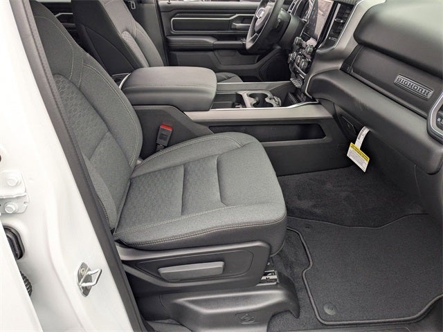 Bright White Clearcoat 2026 Ram 1500 Big Horn/Lone Star 4WD 8-Speed Automatic HEMI 5.7L V8 Multi Displacement VVT eTorque 115V Auxiliary Power Outlet, 2nd Row in Floor Storage Bins, 3 Rear Seat Head Restraints, 4 Way Front Headrests, 4-Wheel Disc Brakes, 400W Inverter, 48V Belt Starter Generator, 4G LTE Wi-Fi Hot Spot, 6 Speakers, ABS brakes, Accent Color Door Handles, Accent Color Premium Power Mirrors, Accent Color Tailgate Handle, Air Conditioning, Alloy wheels, AM/FM radio, Anti-Spin Differential Rear Axle, Apple CarPlay, Apple CarPlay/Android Auto, Auto High-beam Headlights, Auto Power-Folding Mirrors, Auto-Dimming Exterior Driver Mirror, Auto-Dimming Rear-View Mirror, Bed Utility Group, Big Horn Level 1 Equipment Group, Black Exterior Mirrors, Black Exterior Truck Badging, Black Headlamp Bezels, Black Interior Accents, Black Painted Exterior Mirrors Caps, Black Premium Power Mirrors, Black Tail Lamp Bezels, Body Color Fender Flares, Body Color Front Bumper, Body Color Rear Bumper with Step Pads, Brake assist, Bucket Seats, Bumpers: chrome, Center Console Parts Module, Cloth Bucket Seats, Compass, Connectivity - US/Canada, Convex Wide-Angle Exterior Mirror Insert, Delay-off headlights, Deluxe Cloth Bucket Seats, Driver door bin, Dual Exhaust with Black Tips, Dual front impact airbags, Dual front side impact airbags, Electronic Stability Control, Exterior 115V AC Outlet, Exterior Mirrors Courtesy Lamps, Exterior Mirrors with Heating Element, Exterior Mirrors with Supplemental Signals, Front anti-roll bar, Front Bucket Seats, Front Center Armrest w/Storage, Front fog lights, Front License Plate Bracket, Front reading lights, Front Seat Back Map Pockets, Front wheel independent suspension, Full Length Floor Console, Fully automatic headlights, Global Telematics Box Module, Glove Box Lamp, Google Android Auto, GPS Antenna Input, Grille Black Surround Black Mesh, Heated door mirrors, Heated Front Seats, Heated Steering Wheel, Illuminated entry, Integrated Center Stack Radio, Integrated Voice Command with Bluetooth®, Leather Wrapped Steering Wheel, Low tire pressure warning, Manual Adjust 4-Way Driver Seat, Manual Adjust 4-Way Front Passenger Seat, Manual Folding Exterior Mirrors, MOPAR 4 Adjustable Cargo Tie-Down Hooks, Mopar Black Tubular Side Steps, MOPAR Spray in Bedliner, MyFlexCare Service Plan, Night Edition, Occupant sensing airbag, Outside temperature display, Overhead airbag, Overhead console, Panic alarm, ParkView Rear Back-Up Camera, Passenger door bin, Passenger vanity mirror, Pick-Up Box Lighting, Power 2-Way Driver Lumbar Adjust, Power Adjust 8-Way Driver Seat, Power Adjustable Pedals, Power door mirrors, Power steering, Power windows, Quick Order Package 27Z Big Horn, Radio data system, Radio: Uconnect 5 W with 8.4 Display, RAM Grille Badge - Black, RAM Grille Badge - Chrome, Rear 60/40 Folding Seat, Rear anti-roll bar, Rear Center Armrest, Rear Dome with on/Off Switch Lamp, Rear Power Sliding Window, Rear step bumper, Rear Window Defroster, Remote keyless entry, SiriusXM Radio Service, SiriusXM Satellite Radio, Speed control, Steering Wheel Mounted Audio Controls, Sun Visors with Illuminated Vanity Mirrors, Supplier Part Tracking (J-1), Tachometer, Telescoping steering wheel, Tilt steering wheel, Traction control, Tri-Fold Tonneau Cover, Trip computer, Universal Garage Door Opener, USB Host Flip, Variably intermittent wipers, Voltmeter, Wheels: 20 x 9.0 Aluminum Painted Clad.