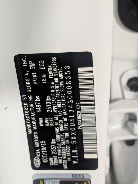 Discover the exceptional 2016 Kia Optima EX, a sophisticated and well-equipped sedan that blends style, performance, and cutting-edge technology. This meticulously maintained Optima has been thoroughly inspected and is ready to provide you with a rewarding driving experience.- ACCIDENT FREE CARFAX- PASSED OUR RIGOROUS SERVICE INSPECTION- FAST AND EASY FINANCING- Harman-Kardon Premium Audio System- Panoramic Sunroof- Blind Spot Detection- 8 Navigation System- Auto-Dimming Rear-View Mirror- Heated & Ventilated Front Seats- Rear Camera Display- Rear Cross Traffic Alert- Rear Parking Assist System- LED Overhead Front & Rear Reading Lamps- Premium PackageThe 2016 Kia Optima EX boasts a stunning exterior in a timeless White color, complemented by a spacious and well-appointed interior. Powered by a 2.4L I4 DGI DOHC engine paired with a 6-Speed Automatic with Sportmatic transmission, this Optima delivers an impressive 24 city / 35 highway MPG, making it an exceptional choice for both city commutes and long-distance travels.Experience the unparalleled comfort and convenience of the Optima's premium features, including the Harman-Kardon audio system, panoramic sunroof, and heated and ventilated front seats. The advanced technology, such as the 8-inch navigation system and blind spot detection, will keep you connected and aware on the road, while the rear camera display and parking assist system provide added peace of mind when maneuvering.This Optima EX is the perfect blend of style, performance, and cutting-edge technology. With its meticulously maintained condition and impressive list of features, it's an exceptional value that deserves your attention. Visit our showroom today to experience the 2016 Kia Optima EX for yourself and discover why it should be your next vehicle.