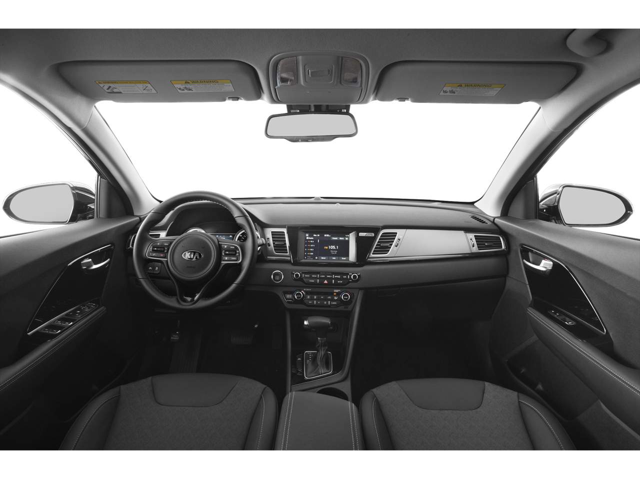 1.6L I4 DGI Hybrid DOHC 16V LEV3-SULEV30, 3.227 Axle Ratio, 4-Wheel Disc Brakes, 6 Speakers, ABS brakes, Air Conditioning, Alloy wheels, AM/FM radio: SiriusXM, Apple CarPlay & Android Auto, Auto-dimming Rear-View mirror, Automatic temperature control, Bodyside moldings, Brake assist, Bumpers: body-color, Carpeted Floor Mats, Cloth & Leather-Trimmed Seats, Delay-off headlights, Driver door bin, Driver vanity mirror, Dual front impact airbags, Dual front side impact airbags, Electronic Stability Control, Emergency communication system: UVO eServices 911 Connect, Exterior Parking Camera Rear, Four wheel independent suspension, Front anti-roll bar, Front Bucket Seats, Front Center Armrest, Front dual zone A/C, Front fog lights, Front reading lights, Fully automatic headlights, Heated door mirrors, Heated Front Bucket Seats, Heated front seats, High-Intensity Discharge Headlights, Illuminated entry, Knee airbag, Leather Shift Knob, Low tire pressure warning, Occupant sensing airbag, Outside temperature display, Overhead airbag, Overhead console, Panic alarm, Passenger door bin, Passenger vanity mirror, Power door mirrors, Power driver seat, Power steering, Power windows, Radio: AM/FM/MP3/SiriusXM Satellite, Rear anti-roll bar, Rear seat center armrest, Rear window defroster, Rear window wiper, Remote keyless entry, Roof rack: rails only, Security system, Speed control, Speed-sensing steering, Split folding rear seat, Spoiler, Steering wheel mounted audio controls, Tachometer, Telescoping steering wheel, Tilt steering wheel, Traction control, Trip computer, Turn signal indicator mirrors, Variably intermittent wipers, Wheels: 16 Alloy w/Full Covers, 1.6L I4 DGI Hybrid DOHC 16V LEV3-SULEV30. Platinum Graphite 2019 Kia Niro Plug-In Hybrid EX FWD 6-Speed Dual Clutch 1.6L I4 DGI Hybrid DOHC 16V LEV3-SULEV30