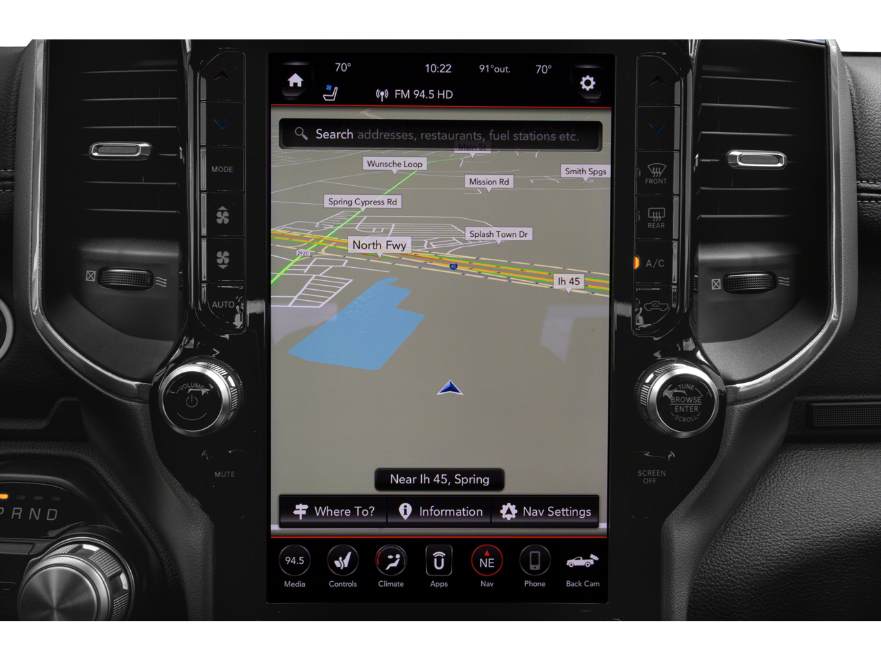 Well equipped with: Laramie Level An Equipment Group (Auto High Beam Headlamp Control, Foam Bottle Insert (Door Trim Panel), ParkSense Front/Rear Park Assist w/Stop, Rain Sensitive Windshield Wipers, Rear 60/40 Folding Split Recline Seat, Remote Tailgate Release, and Tailgate Ajar Warning Lamp), Quick Order Package 27H Laramie, Sport Appearance Package (Black Interior Accents, Body Color Door Handles, Body Color Exterior Mirrors, Body Color Front Bumper, Body Color Premium Power Mirrors, Body Color Rear Bumper w/Step Pads, Grille Surround 3 Body Color Tex 2 Black, Sport Decal, Sport Performance Hood, and Wheels: 20 x 9 Premium Painted w/Inserts), #1 Seat Foam Cushion, 1-Yr SiriusXM Guardian Trial, 10 Speakers, 12 Touchscreen Display, 3 Rear Seat Head Restraints, 33 Gallon Fuel Tank, 4 Way Front Headrests, 4-Wheel Disc Brakes, 48V Belt Starter Generator, 4G LTE Wi-Fi Hot Spot, 5-Year SiriusXM Traffic Service, 5-Year SiriusXM Travel Link Service, 8.4 Touchscreen Display, ABS brakes, Adjustable pedals, Air Conditioning, Alloy wheels, AM/FM radio: SiriusXM, Apple CarPlay, Apple CarPlay/Android Auto, Audio memory, Auto-dimming door mirrors, Auto-dimming Rear-View mirror, Automatic temperature control, Brake assist, Bumpers: chrome, Chrome Exterior Mirrors, Compass, Delay-off headlights, Disassociated Touchscreen Display, Dome Dual LED Reading Lamp, Driver door bin, Driver Seat Memory, Driver vanity mirror, Dual front impact airbags, Dual front side impact airbags, Dual-Pane Panoramic Sunroof, Electronic Stability Control, Exterior 115V AC Outlet, For Details, Visit DriveUconnect.com, For More Info, Call 800-643-2112, Front anti-roll bar, Front Center Armrest w/Storage, Front dual zone A/C, Front fog lights, Front License Plate Bracket, Front reading lights, Front Seat Back Map Pockets, Front wheel independent suspension, Fully automatic headlights, Garage door transmitter, Google Android Auto, GPS Antenna Input, GPS Navigation, HD Radio, Heated door mirrors, Heated Front Seats, Heated front seats, Heated Steering Wheel, Heated steering wheel, Illuminated entry, Integrated Center Stack Radio, Integrated Voice Command w/Bluetooth®, Leather steering wheel, Leather Trim 40/20/40 Bench Seat, LED Dome/Reading Lamp, Low tire pressure warning, Memory seat, Occupant sensing airbag, Outside temperature display, Overhead airbag, Overhead console, Panic alarm, ParkView Rear Back-Up Camera, Passenger door bin, Passenger vanity mirror, Pedal memory, Power 4-Way Driver Lumbar Adjust, Power 4-Way Passenger Lumbar Adjust, Power 8-Way Driver & Passenger Seats, Power door mirrors, Power driver seat, Power passenger seat, Power steering, Power windows, Radio data system, Radio: Uconnect 12 w/Navigation, Radio: Uconnect 4 w/8.4 Display, RamBox Cargo Management System, Rear anti-roll bar, Rear seat center armrest, Rear step bumper, Rear Underseat Compartment Storage, Rear window defroster, Remote keyless entry, Security system, SiriusXM Radio Service, SiriusXM Satellite Radio, SiriusXM Traffic Plus, SiriusXM Travel Link, SiriusXM w/360L, Speed control, Split folding rear seat, Steering wheel mounted audio controls, Tachometer, Telescoping steering wheel, Tilt steering wheel, Traction control, Trip computer, Turn signal indicator mirrors, USB Host Flip, Variably intermittent wipers, Ventilated Front Seats, Ventilated front seats, Voltmeter, and Wheels: 18 x 8 Aluminum Base PainteD.
