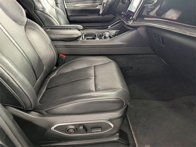 Well equipped with: Flexible Seating Group (7-Passenger Seating, Floor Console w/Cupholder, and Power Tip/Slide Recline 2nd Row Buckets), Quick Order Package 22N, Rear Seat Video Group 1 (Amazon Fire TV Built-In, Seatback Video Screens, and Video USB Port), Navigation System, 10 Speakers, 3.21 Rear Axle Ratio, 3rd row seats: bench, 4-Wheel Disc Brakes, ABS brakes, Adjustable pedals, Air Conditioning, Alloy wheels, AM/FM radio: SiriusXM with 360L, Anti-whiplash front head restraints, Audio memory, Auto High-beam Headlights, Auto-dimming door mirrors, Auto-dimming Rear-View mirror, Auto-leveling suspension, Automatic temperature control, Brake assist, Bumpers: body-color, Compass, Delay-off headlights, Driver door bin, Driver vanity mirror, Driver's Seat Mounted Armrest, Dual front impact airbags, Dual front side impact airbags, Electronic Stability Control, Exterior Parking Camera Rear, Four wheel independent suspension, Front anti-roll bar, Front Bucket Seats, Front Center Armrest w/Storage, Front dual zone A/C, Front fog lights, Front Passenger Interactive Display, Front reading lights, Fully automatic headlights, Garage door transmitter, Genuine wood console insert, Genuine wood dashboard insert, Genuine wood door panel insert, Heads-Up Display, Heated door mirrors, Heated front seats, Heated rear seats, Heated steering wheel, Illuminated entry, Knee airbag, Leather Trimmed Bucket Seats, Low tire pressure warning, Memory seat, Normal Duty Suspension, Occupant sensing airbag, Outside temperature display, Overhead airbag, Overhead console, Panic alarm, Passenger door bin, Passenger seat mounted armrest, Passenger vanity mirror, Pedal memory, Power adjustable front head restraints, Power door mirrors, Power driver seat, Power Liftgate, Power passenger seat, Power steering, Power windows, Radio data system, Radio: Uconnect 5 Nav w/10.1 Display, Rain sensing wipers, Rear air conditioning, Rear anti-roll bar, Rear dual zone A/C, Rear reading lights, Rear seat center armrest, Rear window defroster, Rear window wiper, Reclining 3rd row seat, Remote keyless entry, Security system, Speed control, Speed-sensing steering, Speed-Sensitive Wipers, Split folding rear seat, Steering wheel memory, Steering wheel mounted audio controls, Tachometer, Telescoping steering wheel, Tilt steering wheel, Traction control, Trip computer, Turn signal indicator mirrors, Variably intermittent wipers, Ventilated front seats, Voltmeter, and Wheels: 20 x 9.0 Premium 2 Aluminum. ONE OWNER, LIFETIME ENGINE GUARANTEE, BALANCE OF FACTORY WARRANTY, 4WD, FAST AND EASY FINANCING, THE NEW PRICE OUTLET, 7-Passenger Seating, Amazon Fire TV Built-In, Flexible Seating Group, Floor Console w/Cupholder, Navigation System, Power Tip/Slide Recline 2nd Row Buckets, Quick Order Package 22N, Rear Seat Video Group 1, Seatback Video Screens, Video USB Port, 10 Speakers, 3.21 Rear Axle Ratio, 3rd row seats: bench, 4-Wheel Disc Brakes, ABS brakes, Adjustable pedals, Air Conditioning, Alloy wheels, AM/FM radio: SiriusXM with 360L, Anti-whiplash front head restraints, Audio memory, Auto High-beam Headlights, Auto-dimming door mirrors, Auto-dimming Rear-View mirror, Auto-leveling suspension, Automatic temperature control, Brake assist, Bumpers: body-color, Compass, Delay-off headlights, Driver door bin, Driver vanity mirror, Driver's Seat Mounted Armrest, Dual front impact airbags, Dual front side impact airbags, Electronic Stability Control, Exterior Parking Camera Rear, Four wheel independent suspension, Front anti-roll bar, Front Bucket Seats, Front Center Armrest w/Storage, Front dual zone A/C, Front fog lights, Front Passenger Interactive Display, Front reading lights, Fully automatic headlights, Garage door transmitter, Genuine wood console insert, Genuine wood dashboard insert, Genuine wood door panel insert, Heads-Up Display, Heated door mirrors, Heated front seats, Heated r