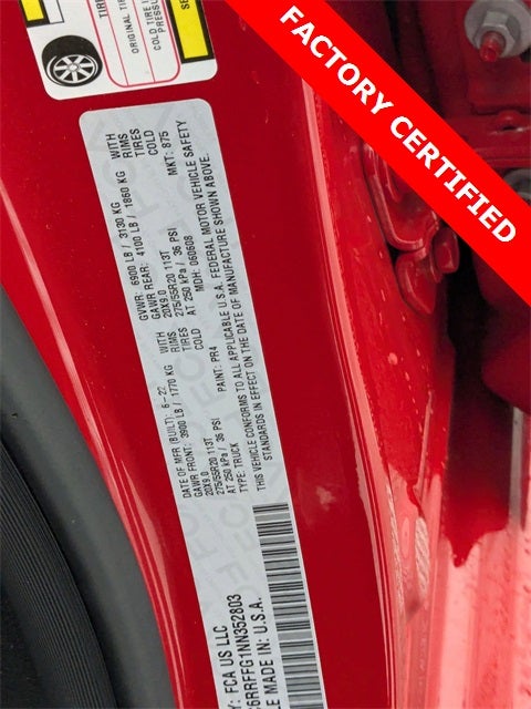 ***FACTORY CHRYSLER CERTIFIED***, LOCAL TRADE, BALANCE OF FACTORY WARRANTY, LIFETIME ENGINE GUARANTEE, 4WD, FAST AND EASY FINANCING, THE NEW PRICE OUTLET, FCA US LLC Certified Pre-Owned Certified, Big Horn Badge, Quick Order Package 23Z Big Horn, 3 Rear Seat Head Restraints, 3.21 Rear Axle Ratio, 4 Way Front Headrests, 4-Wheel Disc Brakes, 48V Belt Starter Generator, 6 Speakers, ABS brakes, Air Conditioning, Alloy wheels, AM/FM radio, Black Exterior Mirrors, Brake assist, Bumpers: chrome, Cloth Bench Seat, Compass, Convex Wide-Angle Mirror Insert, Delay-off headlights, Driver door bin, Dual front impact airbags, Dual front side impact airbags, Electronic Stability Control, Emergency communication system: SiriusXM Guardian, Front anti-roll bar, Front Center Armrest w/Storage, Front fog lights, Front reading lights, Front Seat Back Map Pockets, Front wheel independent suspension, Fully automatic headlights, Global Telematics Box Module (TBM), GPS Antenna Input, Heated door mirrors, Heavy-Duty Engine Cooling, Illuminated entry, Integrated Voice Command w/Bluetooth®, Leather steering wheel, Low tire pressure warning, Manufacturer's Statement of Origin, MOPAR Front & Rear Rubber Floor Mats, Occupant sensing airbag, Outside temperature display, Overhead airbag, Overhead console, Panic alarm, ParkView Rear Back-Up Camera, Passenger door bin, Passenger vanity mirror, Power door mirrors, Power steering, Power windows, Radio data system, Radio: Uconnect 3 w/5 Display, Rear 60/40 Folding Seat, Rear anti-roll bar, Rear seat center armrest, Rear step bumper, Remote keyless entry, Speed control, Split folding rear seat, Steering wheel mounted audio controls, Tachometer, Telescoping steering wheel, Tilt steering wheel, Traction control, Trip computer, Variably intermittent wipers, Voltmeter, Wheels: 18 x 8 Cast-Aluminum Painted, Wheels: 20 x 9 Aluminum Chrome Clad (WRK), Big Horn Badge, Quick Order Package 23Z Big Horn. Flame Red Clearcoat 2022 Ram 1500 Big Horn/Lone Star 4WD 8-Speed Automatic 3.6L V6 24V VVT Priced below KBB Fair Purchase Price! 19/24 City/Highway MPG Odometer is 10926 miles below market average!