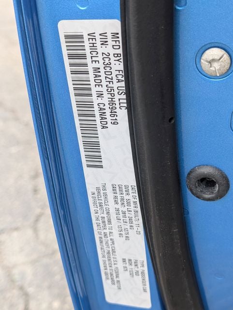 ***FACTORY CHRYSLER CERTIFIED***, CLEAN CARFAX, LOCAL TRADE, BALANCE OF FACTORY WARRANTY, LIFETIME ENGINE GUARANTEE, FAST AND EASY FINANCING, THE NEW PRICE OUTLET, FCA US LLC Certified Pre-Owned Certified, 506 Watt Amplifier, 9 Amplified Speakers w/Subwoofer, Alpine Audio Group w/Subwoofer, Black-Edged Premium Floormats, Exterior Mirrors w/Heating Element, GPS Navigation, Heated Front Seats, Heated Steering Wheel, High-Intensity Discharge Headlamps, Mopar Bright Door Sills, Mopar Interior Appearance Group, MOPAR Premium Floor Mats w/Logo, Plus Package, Power Multi-Function Foldaway Mirrors, Power Tilt/Telescope Steering Column, Premium-Stitched Dash Panel, Quick Order Package 24G R/T Scat Pack, Radio/Driver Seat/Mirrors Memory, Scat Pack Logo Nappa/Alcantara Seat, Surround Sound, Trunk Mat w/Logo, Ventilated Front Seats, 1-Yr SiriusXM Guardian Trial, 4-Wheel Disc Brakes, 4G LTE Wi-Fi Hot Spot, 5-Year SiriusXM Traffic Service, 5-Year SiriusXM Travel Link Service, 6 Speakers, 8.4 Touchscreen Display, ABS brakes, Air Conditioning, All Radio Equipped Vehicles, All VP4R Radios, Alloy wheels, AM/FM radio: SiriusXM, Anti-whiplash front head restraints, Apple CarPlay, Apple CarPlay/Android Auto, Auto-dimming Rear-View mirror, Automatic temperature control, Body Color Exterior Mirrors, Brake assist, Bumpers: body-color, Compass, Compass Gauge, Delay-off headlights, Driver door bin, Driver vanity mirror, Dual front impact airbags, Dual front side impact airbags, Electronic Stability Control, Emergency communication system: SiriusXM Guardian, For Details, Visit DriveUconnect.com, For More Info, Call 800-643-2112, Four wheel independent suspension, Front anti-roll bar, Front Bucket Seats, Front Center Armrest, Front dual zone A/C, Front fog lights, Front reading lights, Fully automatic headlights, Garage door transmitter, Google Android Auto, GPS Antenna Input, HD Radio, Heated door mirrors, Houndstooth Cloth Performance Seats, Illuminated entry, Integrated Center Stack Radio, Integrated Voice Command w/Bluetooth®, Leather Shift Knob, Low tire pressure warning, Manuf Statement of Origin, Media Hub (2 USB, AUX), Outside temperature display, Overhead airbag, Overhead console, Panic alarm, ParkView Rear Back-Up Camera, Passenger door bin, Passenger vanity mirror, Power door mirrors, Power driver seat, Power steering, Power Sunroof, Power windows, Radio data system, Radio: Uconnect 4C Nav w/8.4 Display, Radio: Uconnect 4C w/8.4 Display, Rear anti-roll bar, Rear reading lights, Rear seat center armrest, Rear window defroster, Remote keyless entry, Rhombi 2-Pc Wheel Center Cap, Scat Pack Stripe, Security system, Shark Fin Antenna, SiriusXM Radio Service, SiriusXM Satellite Radio, SiriusXM Traffic Plus, SiriusXM Travel Link, Speed control, Speed-sensing steering, Split folding rear seat, Spoiler, Sport steering wheel, Steering wheel mounted audio controls, Tachometer, Telescoping steering wheel, Tilt steering wheel, Traction control, Trip computer, USB Host Flip, Variably intermittent wipers, Wheels: 20 x 9.0 Lo Gloss Granite Crystal, 506 Watt Amplifier, 9 Amplified Speakers w/Subwoofer, Alpine Audio Group w/Subwoofer, Black-Edged Premium Floormats, Exterior Mirrors w/Heating Element, GPS Navigation, Heated Front Seats, Heated Steering Wheel, High-Intensity Discharge Headlamps, Mopar Bright Door Sills, Mopar Interior Appearance Group, MOPAR Premium Floor Mats w/Logo, Plus Package, Power Multi-Function Foldaway Mirrors, Power Tilt/Telescope Steering Column, Premium-Stitched Dash Panel, Quick Order Package 24G R/T Scat Pack, Radio/Driver Seat/Mirrors Memory, Scat Pack Logo Nappa/Alcantara Seat, Surround Sound, Trunk Mat w/Logo, Ventilated Front Seats. B5 Blue Pearlcoat 2023 Dodge Challenger R/T Scat Pack RWD 8-Speed Automatic SRT HEMI 6.4L V8 MDS Priced below KBB Fair Purchase Price! 15/24 City/Highway MPG Odometer is 11888 miles below market average!