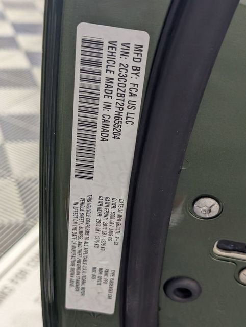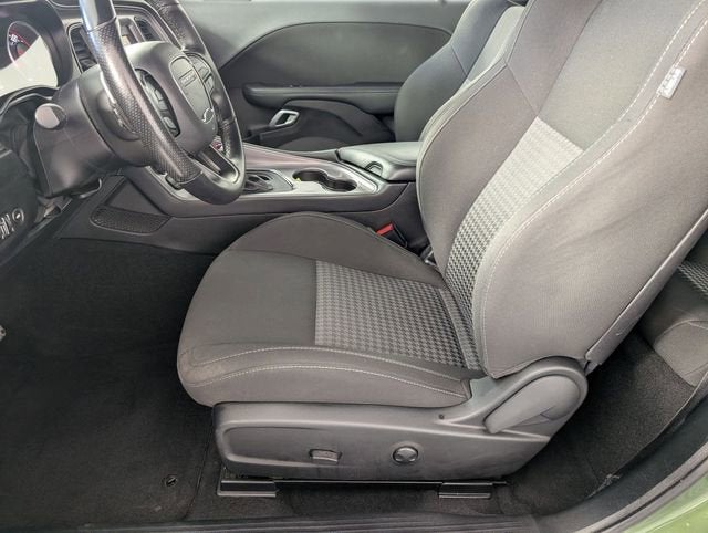 276 Watt Amplifier, 4-Wheel Disc Brakes, 6 Speakers, ABS brakes, Air Conditioning, Alloy wheels, AM/FM radio, Anti-whiplash front head restraints, Apple CarPlay, Apple CarPlay/Android Auto, Auto-dimming Rear-View mirror, Automatic temperature control, Body Color Exterior Mirrors, Brake assist, Bumpers: body-color, Delay-off headlights, Driver door bin, Driver vanity mirror, Dual front impact airbags, Dual front side impact airbags, Electronic Stability Control, Exterior Mirrors w/Heating Element, Four wheel independent suspension, Front anti-roll bar, Front Bucket Seats, Front Center Armrest, Front dual zone A/C, Front reading lights, Fully automatic headlights, Garage door transmitter, Google Android Auto, GPS Antenna Input, Heated door mirrors, Houndstooth Cloth Performance Seats, Illuminated entry, Integrated Center Stack Radio, Integrated Voice Command w/Bluetooth®, Leather Shift Knob, Low tire pressure warning, Media Hub (2 USB, AUX), Outside temperature display, Overhead airbag, Overhead console, Panic alarm, ParkView Rear Back-Up Camera, Passenger door bin, Passenger vanity mirror, Power door mirrors, Power driver seat, Power steering, Power windows, Quick Order Package 28H, Radio data system, Radio: Uconnect 4 w/7 Display, Rear anti-roll bar, Rear reading lights, Rear seat center armrest, Rear window defroster, Remote keyless entry, Rhombi 2-Pc Wheel Center Cap, Security system, Speed control, Speed-sensing steering, Split folding rear seat, Spoiler, Sport steering wheel, Steering wheel mounted audio controls, Tachometer, Telescoping steering wheel, Tilt steering wheel, Traction control, Trip computer, USB Host Flip, Variably intermittent wipers, Wheels: 20 x 8.0 Machined w/Granite Pocket. F8 Green 2023 Dodge Challenger R/T RWD 8-Speed Automatic HEMI 5.7L V8 Multi Displacement VVT 16/25 City/Highway MPG