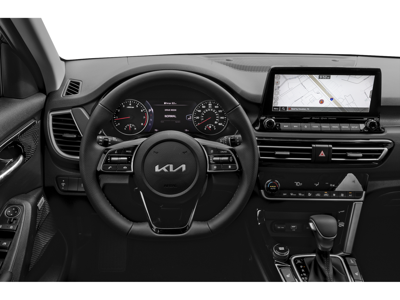 CLEAN CARFAX, ONE OWNER, LOCAL TRADE, BALANCE OF FACTORY WARRANTY, LIFETIME ENGINE GUARANTEE, AWD, FAST AND EASY FINANCING, THE NEW PRICE OUTLET, Navigation System, Sunroof, SX Sunroof Package, 4-Wheel Disc Brakes, 4.643 Axle Ratio, 8 Speakers, ABS brakes, Air Conditioning, Alloy wheels, AM/FM radio: SiriusXM, Apple CarPlay & Android Auto, Auto High-beam Headlights, Auto-dimming Rear-View mirror, Automatic temperature control, Brake assist, Bumpers: body-color, Carpet Floor Mats, Delay-off headlights, Driver door bin, Driver vanity mirror, Dual front impact airbags, Dual front side impact airbags, Electronic Stability Control, Emergency communication system: 911 Connect, Exterior Parking Camera Rear, Four wheel independent suspension, Front anti-roll bar, Front Bucket Seats, Front Center Armrest, Front fog lights, Front reading lights, Fully automatic headlights, Heated door mirrors, Heated Front Bucket Seats, Heated front seats, Illuminated entry, Leather Shift Knob, Low tire pressure warning, Occupant sensing airbag, Outside temperature display, Overhead airbag, Overhead console, Panic alarm, Passenger door bin, Passenger vanity mirror, Power door mirrors, Power driver seat, Power steering, Power windows, Radio: AM/FM/MP3 Display Audio w/Navigation, Rear seat center armrest, Rear window defroster, Rear window wiper, Remote keyless entry, Security system, Sofino Premium Leatherette Seat Trim, Speed control, Speed-sensing steering, Split folding rear seat, Spoiler, Sport steering wheel, Steering wheel mounted audio controls, Tachometer, Telescoping steering wheel, Tilt steering wheel, Traction control, Trip computer, Turn signal indicator mirrors, Variably intermittent wipers, Wheels: 18 Alloy w/Machined Finish, Navigation System, Sunroof, SX Sunroof Package. Cherry Black 2023 Kia Seltos SX AWD 7-Speed Automatic I4 25/30 City/Highway MPG 25/30 City/Highway MPG