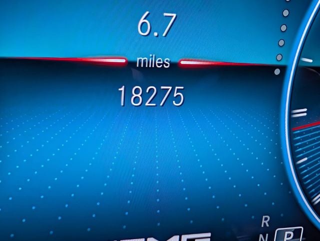 The exterior of this stunning vehicle exudes a bold, athletic presence with its sleek Gray finish, accented by the AMG® Night Package that includes Black Exhaust Tips, Front Splitter, Mirror Covers, Rear Diffuser Insert, and Side Sill Inserts. The 19-inch AMG® Multispoke Wheels further enhance the dynamic styling.