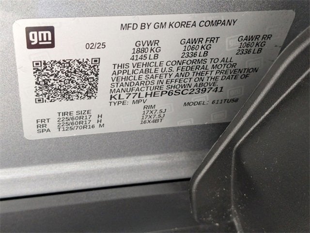 Sterling Gray Metallic 2025 Chevrolet Trax LT FWD 6-Speed Automatic 1.2L I3 DI Turbocharged DOHC 12V LEV3-ULEV70 137hp*GM CERTIFIED*, ONE OWNER ACCIDENT FREE CARFAX, LIFETIME ENGINE GUARANTEE, APPLE CARPLAY/ANDROID AUTO, HEATED SEATS, REAR BACKUP CAMERA, Bluetooth® HANDS FREE, PASSED OUR RIGOROUS SERVICE INSPECTION, FAST AND EASY FINANCING, ***SAVE MORE WHEN YOU TRADE WITH HIESTER CHEVROLET!***, GM Certified Certified, Front Doors Keyless Open, Heated Driver and Front Passenger Seats, Heated Power-Adjustable Outside Mirrors, Heated Steering Wheel, LT Convenience Package, Preferred Equipment Group 1LT, Wrapped Steering Wheel, 2-Way Adjustable Front Head Restraints, 3.50 Final Drive Axle Ratio, 4-Way Manual Front Passenger Seat Adjuster, 4-Wheel Disc Brakes, 6 Speakers, 6-Speaker Audio System Feature, 6-Way Manual Driver Seat Adjuster, ABS brakes, Air Conditioning, Alloy wheels, AM/FM radio: SiriusXM, Auto High-beam Headlights, Automatic temperature control, Brake assist, Bumpers: body-color, Cloth/Evotex Seat Trim, Compass, Delay-off headlights, Driver door bin, Driver vanity mirror, Dual front impact airbags, Dual front side impact airbags, Electronic Stability Control, Emergency communication system: OnStar One Essentials, Exterior Parking Camera Rear, Front anti-roll bar, Front Bucket Seats, Front Center Armrest, Front reading lights, Front wheel independent suspension, Fully automatic headlights, Illuminated entry, Low tire pressure warning, Occupant sensing airbag, Outside temperature display, Overhead airbag, Overhead console, Panic alarm, Passenger door bin, Passenger vanity mirror, Power door mirrors, Power steering, Power windows, Premium audio system: Chevrolet Infotainment 3, Radio data system, Radio: AM/FM Stereo Audio System, Rear window defroster, Rear window wiper, Remote keyless entry, Security system, SiriusXM Trial Subscription, Speed control, Split folding rear seat, Spoiler, Steering wheel mounted audio controls, Tachometer, Telescoping steering wheel, Tilt steering wheel, Traction control, Trip computer, Variably intermittent wipers, LANE KEEP ASSIST W/ LANE DEPARTURE WARNING, FOLLOWING DISTANCE INDICATOR, FORWARD COLLISION ALERT, Front Doors Keyless Open, Heated Driver and Front Passenger Seats, Heated Power-Adjustable Outside Mirrors, Heated Steering Wheel, LT Convenience Package, Preferred Equipment Group 1LT, Wrapped Steering Wheel.Certification Program Details: GM Certified Pre-Owned Details: * Powertrain Limited Warranty: 72 Month/100,000 Mile (whichever comes first) from original in-service date * 24 months/24,000 miles (whichever comes first) Certified Pre-Owned Scheduled Maintenance Plan and 3 days/150 miles (whichever comes first) Vehicle Exchange Program. SiriusXM 3-month trial subscription. * Transferable Warranty * Limited Warranty: 12 Month/12,000 Mile (whichever comes first) from certified purchase date * Roadside Assistance * Warranty Deductible: $0 * 172 Point Inspection * Vehicle History ****Thank you for choosing John Hiester Chevrolet. Proudly serving Fuquay Varina, Holly Springs, Cary, Apex, Raleigh, Durham, Fayetteville, Sanford, Pinehurst, Southern Pines, Pittsboro, Lillington, Angier, Dunn, Erwin, Benson, and surrounding areas. The team is excited and dedicated to making sure every customer has an unparalleled buying experience. Elevate your driving experience today! Ask us about our pre-owned vehicles that come with our Dealership for Life benefits. With over 1000 exceptional vehicles to choose from and the ability to acquire every used make and model, we are confident you, your family and friends will be 100% satisfied with the service, selection, and deals. Many of our customers love the off-site test drives we offer and at home deliveries. ****Please call us at 919-346-6312*** and experience world class customer service. Get off your Kiester and come to Hiester! All pricing and details are believed to be accurate, but we do not warrant or guarantee such accuracy. Price