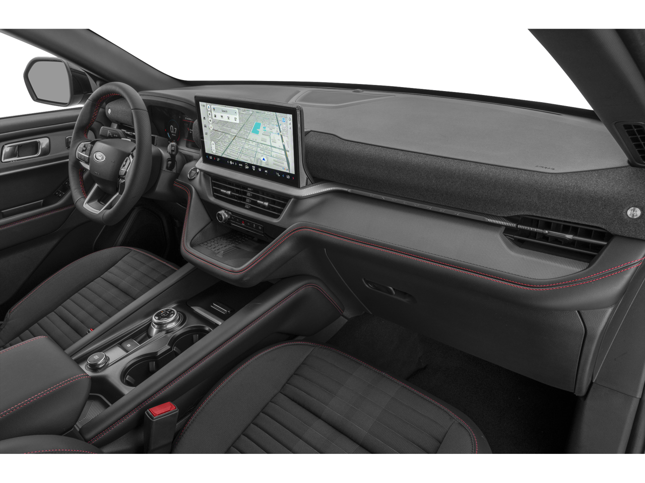 Well equipped with: Equipment Group 300A Standard Package, ST-Line Street Pack (Performance Brakes, Red Painted Perf Front & Rear Brake Calipers, and Wheels: 21 Magnetite-Painted Aluminum), 4WD, 10 Speakers, 3.58 Non-Limited Slip Rear Axle, 3rd row seats: bench, 4-Wheel Disc Brakes, ABS brakes, Air Conditioning, Alloy wheels, AM/FM radio: SiriusXM with 360L, Apple CarPlay/Android Auto, Auto High-beam Headlights, Automatic temperature control, Brake assist, Bumpers: body-color, Compass, Delay-off headlights, Driver door bin, Driver vanity mirror, Dual front impact airbags, Dual front side impact airbags, Electronic Stability Control, Emergency communication system: 911 Assist, Exterior Parking Camera Rear, Four wheel independent suspension, Front anti-roll bar, Front Bucket Seats, Front Center Armrest, Front dual zone A/C, Front fog lights, Front reading lights, Fully automatic headlights, Garage door transmitter, Heated door mirrors, Heated front seats, Heated steering wheel, Heated Unique Cloth Captain's Chairs, Illuminated entry, Internet access capable: FordPass Connect 5G, Knee airbag, Leather steering wheel, Low tire pressure warning, Navigation System, Occupant sensing airbag, Outside temperature display, Overhead airbag, Overhead console, Panic alarm, Passenger door bin, Passenger vanity mirror, Power door mirrors, Power driver seat, Power Liftgate, Power passenger seat, Power steering, Power windows, Radio: B&O Sound System by Bang & Olufsen, Rear air conditioning, Rear anti-roll bar, Rear reading lights, Rear window defroster, Rear window wiper, Remote keyless entry, Security system, Speed control, Speed-sensing steering, Speed-Sensitive Wipers, Split folding rear seat, Spoiler, Steering wheel mounted audio controls, Tachometer, Telescoping steering wheel, Tilt steering wheel, Traction control, Trip computer, Variably intermittent wipers, and Wheels: 20 Ebony-Painted Machined Aluminum. 4WD.