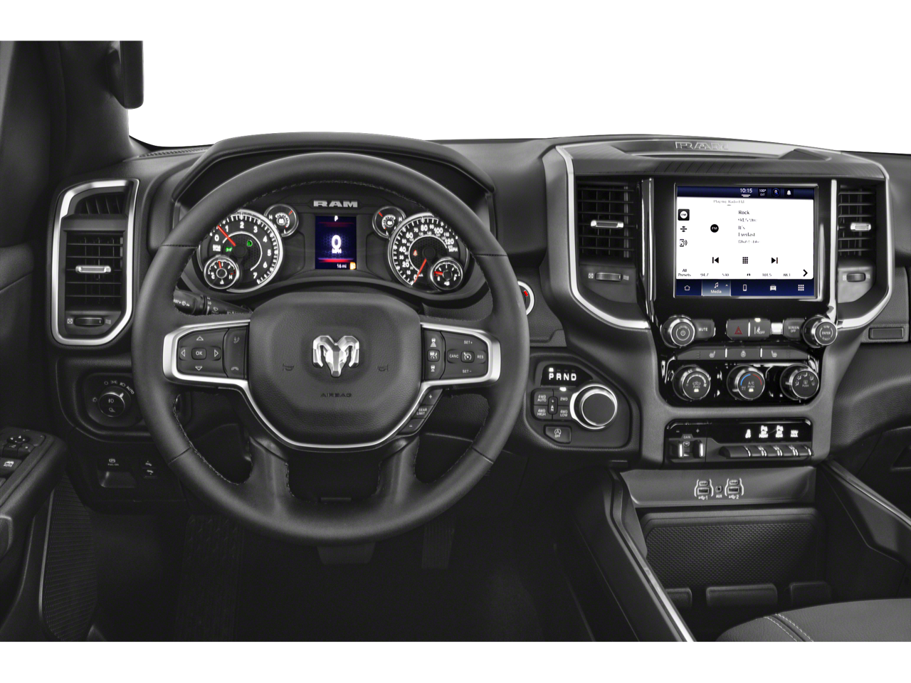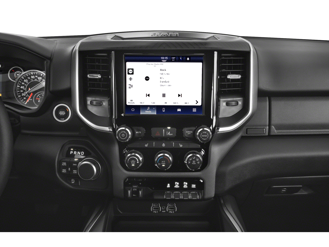 Well equipped with: Big Horn Level 2 Equipment Group (115V Auxiliary Power Outlet, 115V Auxiliary Rear Power Outlet, 12 Touchscreen Display, 2nd Row In Floor Storage Bins, 400W Inverter, 4G LTE Wi-Fi Hot Spot, 9 Amplified Speakers w/Subwoofer, Air Conditioning ATC w/Dual Zone Control, Apple CarPlay, Auto Power-Folding Mirrors, Auto-Dimming Exterior Driver Mirror, Auto-Dimming Rear-View Mirror, Black Exterior Mirrors, Black Premium Power Mirrors, Cluster 7.0 TFT Color Display, Configurable Drive Mode, Connected Travel & Traffic Services, Connectivity - US/Canada, Convex Wide-Angle Exterior Mirror Insert, Exterior Mirrors Courtesy Lamps, Exterior Mirrors w/Heating Element, Exterior Mirrors w/Supplemental Signals, Glove Box Lamp, Google Android Auto, GPS Antenna Input, GPS Navigation, HD Radio, Heated Front Seats, Heated Steering Wheel, Integrated Voice Command w/Bluetooth®, Leather Wrapped Steering Wheel, LED Dome Lamp w/On/Off Switch, LED Footwell Lighting, Media Hub w/2 Charge Only USBs, Overhead LED Lamps, Power 2-Way Driver Lumbar Adjust, Power Adjust 8-Way Driver Seat, Power Adjustable Pedals, Premium Overhead Console, Radio: Uconnect 5 Nav w/12.0 Display, Rear Power Sliding Window, Rear Window Defroster, Remote Tailgate Release, Security Alarm, SiriusXM w/360L, Steering Wheel Mounted Audio Controls, Sun Visors w/Illuminated Vanity Mirrors, Universal Garage Door Opener, and USB Host Flip), Night Edition (3 Rear Seat Head Restraints, 4 Way Front Headrests, Accent Color Door Handles, Accent Color Premium Power Mirrors, Accent Color Tailgate Handle, Anti-Spin Differential Rear Axle, Black Exterior Truck Badging, Black Headlamp Bezels, Black Interior Accents, Black Painted Exterior Mirrors Caps, Black Tail Lamp Bezels, Body Color Front Bumper, Body Color Rear Bumper w/Step Pads, Bucket Seats, Deluxe Cloth Bucket Seats, Front Seat Back Map Pockets, Full Length Floor Console, Grille Black Surround Black Mesh, Manual Adjust 4-Way Front Passenger Seat, RAM Grille Badge - Black, Rear 60/40 Folding Seat, Rear Center Armrest, Rear Wheelhouse Liners, and Wheels: 20 x 9.0 Aluminum Painted Clad), Quick Order Package 21R Lone Star (Regional) (Lone Star Badge), 3.21 Rear Axle Ratio, 4-Wheel Disc Brakes, 6 Speakers, ABS brakes, Air Conditioning, Alloy wheels, AM/FM radio, Apple CarPlay/Android Auto, Auto High-beam Headlights, Brake assist, Bumpers: chrome, Cloth Bench Seat, Cluster 12 TFT Color Display, Compass, Delay-off headlights, Driver door bin, Dual front impact airbags, Dual front side impact airbags, Electronic Stability Control, Exterior Parking Camera Rear, Front anti-roll bar, Front Center Armrest w/Storage, Front fog lights, Front License Plate Bracket, Front reading lights, Front wheel independent suspension, Fully automatic headlights, Heated door mirrors, Illuminated entry, Low tire pressure warning, Manual Folding Exterior Mirrors, Occupant sensing airbag, Outside temperature display, Overhead airbag, Overhead console, Panic alarm, Passenger door bin, Passenger vanity mirror, Power door mirrors, Power steering, Power windows, Radio data system, Radio: Uconnect 5 W w/8.4 Display, RAM Grille Badge - Chrome, Rear anti-roll bar, Rear seat center armrest, Rear step bumper, Remote keyless entry, Speed control, Split folding rear seat, Supplier Part Tracking (J-1), Tachometer, Telescoping steering wheel, Tilt steering wheel, Traction control, Trip computer, Variably intermittent wipers, Voltmeter, and Wheels: 18 x 8 Cast-Aluminum Painted.