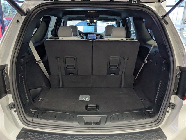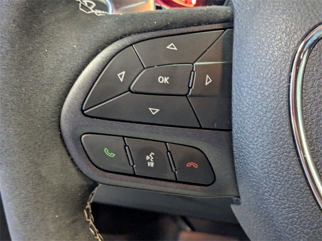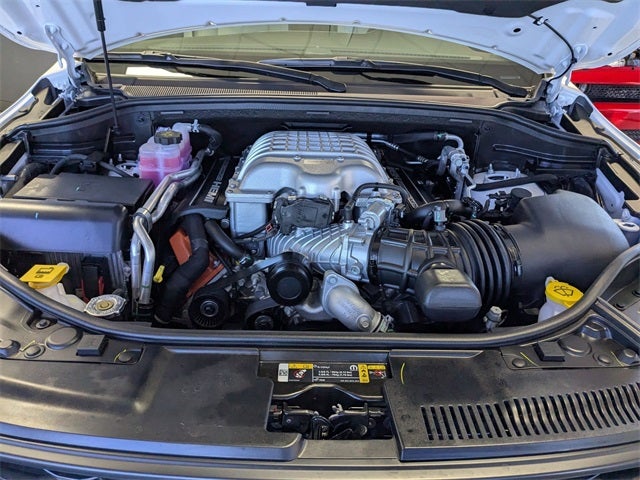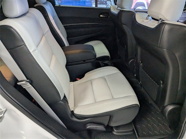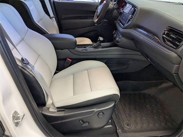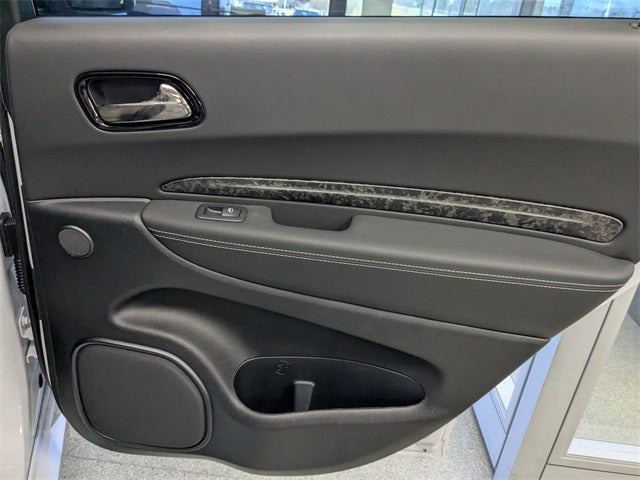AWD, 19 Harman/Kardon Amplified Speakers with Subwoofer, 2nd Row Fold/Tumble Captain Chairs, 3.70 Rear Axle Ratio, 4-Wheel Disc Brakes, 7 and 4 Pin Wiring Harness, 825 Watt Amplifier, 9 Speakers, ABS brakes, Adaptive Cruise Control with Stop, Adaptive suspension, Advanced Brake Assist, Air Conditioning, Alloy wheels, AM/FM radio: SiriusXM w/360L, Apple CarPlay/Android Auto, Audio memory, Auto High Beam Headlamp Control, Auto-dimming door mirrors, Auto-dimming Rear-View mirror, Automatic temperature control, Blind Spot with Trailer Detection, Brake assist, Bumpers: body-color, Class IV Receiver Hitch, Compass, Delay-off headlights, Driver door bin, Driver vanity mirror, Dual front impact airbags, Dual front side impact airbags, Eclipse Black Exhaust Tips, Electronic Stability Control, Emergency communication system: Dodge Connect, Forged Carbon Fiber Interior Accents, Four wheel independent suspension, Front anti-roll bar, Front Bucket Seats, Front Center Armrest w/Storage, Front dual zone A/C, Front reading lights, Full Speed Forward Collision Warning Plus, Fully automatic headlights, Garage door transmitter, Hammerhead Gray Seat Belts, Heated door mirrors, Heated front seats, Heated rear seats, Heated steering wheel, Illuminated entry, Jailbreak Badge, Knee airbag, Lane Departure Warning Plus, Leather Shift Knob, Leather steering wheel, Leather Trimmed Bucket Seats, Leather/Suede Wrapped Steering Wheel, Low tire pressure warning, Memory seat, MyFlexCare Service Plan, Navigation System, Occupant sensing airbag, Orange Brake Calipers, Orange SRT Hellcat Fender Badges, Outside temperature display, Overhead airbag, Overhead console, Panic alarm, ParkView Rear Back-Up Camera, Passenger door bin, Passenger vanity mirror, Power door mirrors, Power driver seat, Power Liftgate, Power passenger seat, Power steering, Power Sunroof, Power windows, Premium Door Trim Panel, Premium Group, Premium Instrument Panel, Quick Order Package 2XM Jailbreak, Radio data system, Radio: Uconnect 5 Nav with 10.1 Display, Rain sensing wipers, Rear air conditioning, Rear anti-roll bar, Rear reading lights, Rear seat center armrest, Rear window defroster, Rear window wiper, Remote keyless entry, Security system, Speed control, Speed-sensing steering, Speed-Sensitive Wipers, Split folding rear seat, Spoiler, Sport steering wheel, Steering wheel mounted audio controls, Supercharged Sill Plate, Tachometer, Telescoping steering wheel, Tilt steering wheel, Traction control, Trailer Brake Control, Trailer Tow Group IV, Trip computer, Turn signal indicator mirrors, Variably intermittent wipers, Ventilated front seats, Voltmeter, Wheels: 20 x 10 Forged Y-Spoke Satin Black, Wheels: 20 x 10 Machine Face with Dark Pockets, AWD. White Knuckle Clearcoat 2026 Dodge Durango SRT Hellcat AWD 8-Speed Automatic 6.2L Supercharged HEMI V8 SRT 12/17 City/Highway MPG