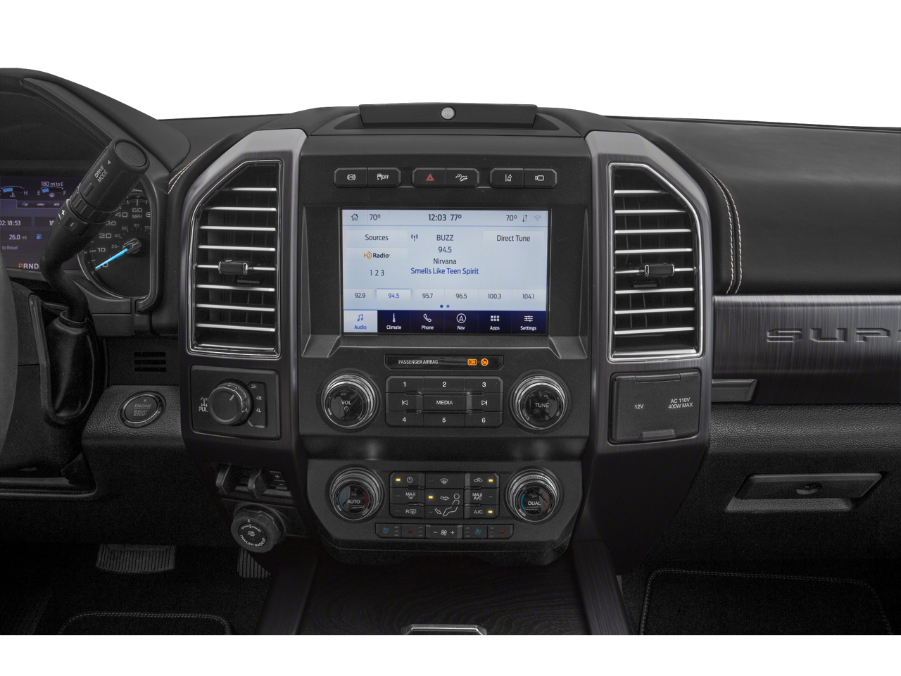 4WD, 10 Speakers, 110V/400W Outlet, 20 Polished Aluminum Wheels, 397 Amp Alternator, 4-Wheel Disc Brakes, ABS brakes, Adjustable pedals, Air Conditioning, Alloy wheels, AM/FM radio: SiriusXM, Auto High-beam Headlights, Auto tilt-away steering wheel, Auto-dimming Rear-View mirror, Automatic temperature control, Bed Mat (Pre-Installed), Brake assist, Bumpers: body-color, Compass, Customer-Placed Trailer Camera (Pre-Installed), Delay-off headlights, Driver door bin, Driver vanity mirror, Dual front impact airbags, Dual front side impact airbags, Electronic Stability Control, Emergency communication system: SYNC 3 911 Assist, Engine Block Heater, Exterior Parking Camera Rear, Flow-Through Console, Front & Rear Wheel Well Liners (Pre-Installed), Front anti-roll bar, Front Bucket Seats, Front Center Armrest, Front dual zone A/C, Front fog lights, Front reading lights, Fully automatic headlights, FX4 Off-Road Package, Garage door transmitter, Heated door mirrors, Heated front seats, Heated rear seats, Heated steering wheel, Illuminated entry, Leather steering wheel, LED Roof Clearance Lights, Low tire pressure warning, Memory seat, Navigation System, Order Code 718A, Outside temperature display, Overhead airbag, Overhead console, Panic alarm, Passenger door bin, Passenger vanity mirror, Pedal memory, Power door mirrors, Power driver seat, Power moonroof, Power passenger seat, Power steering, Power windows, Radio data system, Radio: B&O System by Bang & Olufsen, Rain sensing wipers, Rapid-Heat Supplemental Cab Heater, Rear Parking Sensors, Rear reading lights, Rear seat center armrest, Rear step bumper, Rear window defroster, Remote keyless entry, Security system, SiriusXM Radio, Snow Plow Prep Package, Speed control, Speed-sensing steering, Split folding rear seat, Steering wheel memory, Steering wheel mounted A/C controls, Steering wheel mounted audio controls, SYNC 3 Communications & Entertainment System, Tachometer, Telescoping steering wheel, Tilt steering wheel, Traction control, Transmission Power Take-Off Provision, Trip computer, Turn signal indicator mirrors, Unique Limited 2-Tone Leather 40/Console/40 Seats, Variably intermittent wipers, Vehicle Safe by Console Vault (Pre-Installed), Ventilated front seats, Wheel Locks (Pre-Installed), 4WD. Black Metallic 2021 Ford F-350SD Limited 4WD 10-Speed Automatic Power Stroke 6.7L V8 DI 32V OHV Turbodiesel